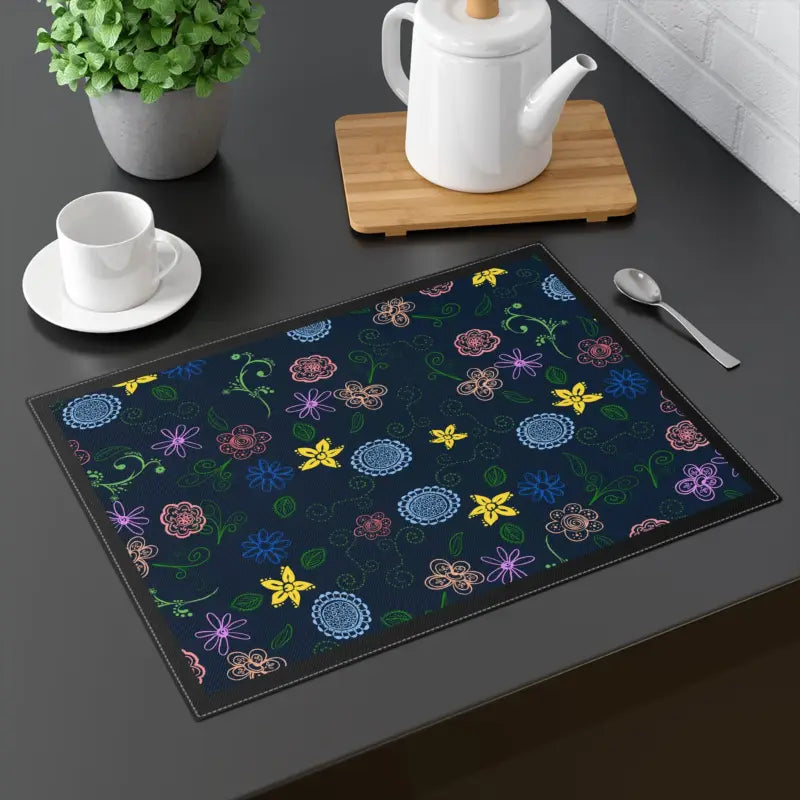 Ready to give your dining table a stunning makeover? Add instant style and vibrant flair to every meal with this floral pattern on navy blue cotton placemat.