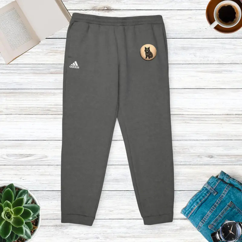 Ninja Cat, adidas Unisex Fleece Joggers. The adidas® fleece joggers are designed for ultimate comfort and style. Crafted from a blend of 70% BCI (Better Cotton Initiative) cotton and 30% recycled polyester (with Dark Grey Heather made from 55% polyester and 45% cotton), these joggers provide a soft, cozy feel and a fully custom style.