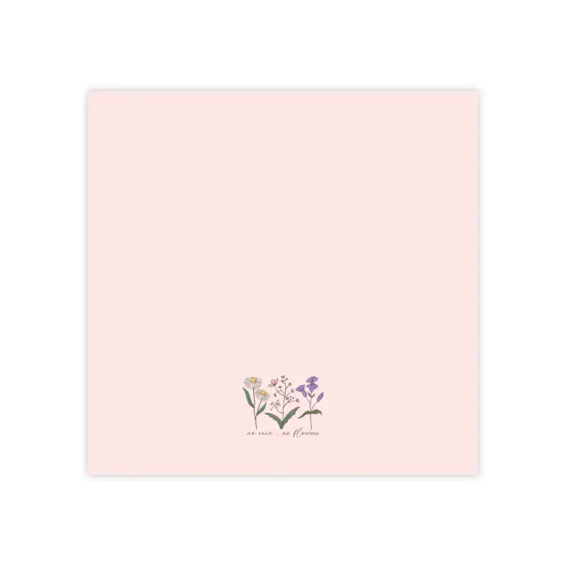No rain no flowers, Post-it Note Pads. Introducing our versatile collection of sticky notes, designed to accommodate both big and small ideas. Each 50-sheet bundle offers seven different sizes, ensuring you find the perfect fit for any task. Crafted from premium 75.2 gsm white uncoated paper, these sticky notes are perfect for personalization with your original designs, meticulously printed to your specifications.