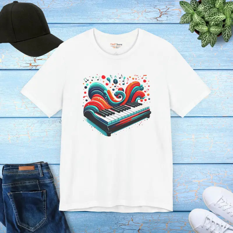 Ready to electrify your wardrobe with a creative flair and unmatched comfort? The Ocean Waves Piano Unisex Jersey Tee transforms your look with bold artistic vibes and a touch of musical magic.