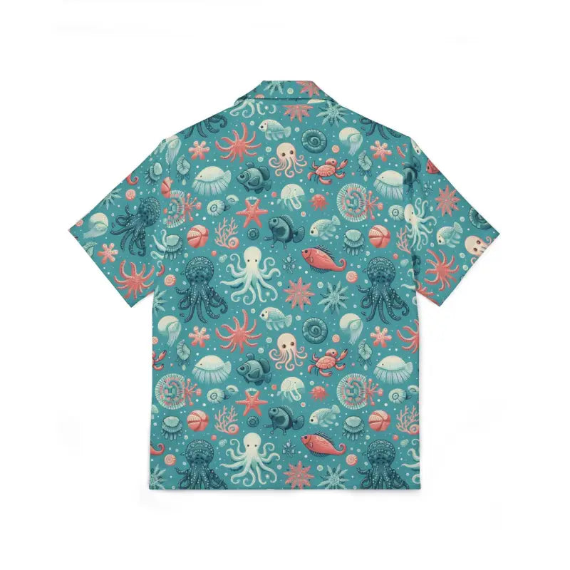 Make a bold splash this summer—unleash your inner ocean explorer with our vibrant marine-themed Hawaiian camp shirt, designed to keep you cool, stylish, and the star of every adventure.