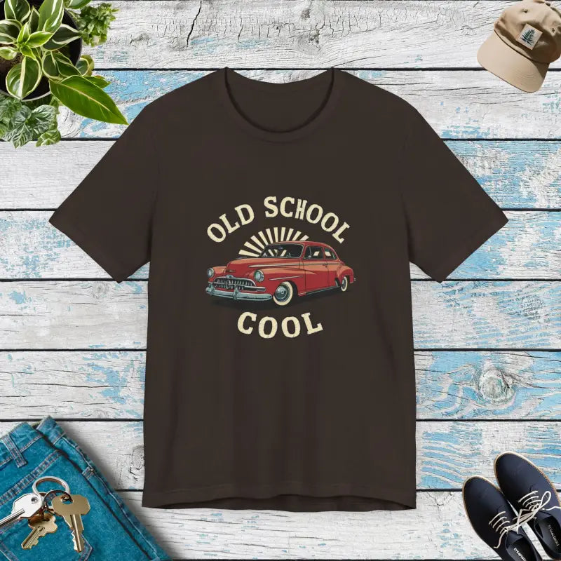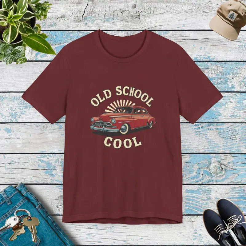 Old School Cool, Vintage Car, Unisex Jersey T-Shirt. This classic unisex jersey short sleeve Old School Cool, Vintage Car tee fits like a well-loved favorite. Soft cotton and quality print make users fall in love with it over and over again. These t-shirts have-ribbed knit collars to bolster shaping. The shoulders are tapered for a better fit over time. Dual side seams hold the garment's shape for longer.
