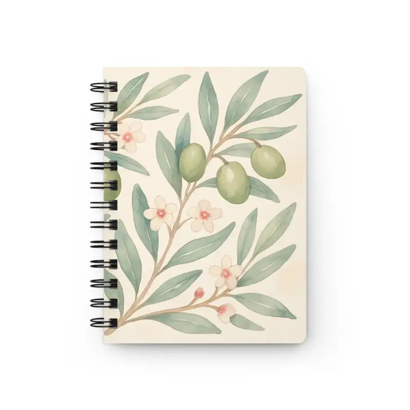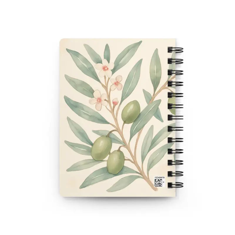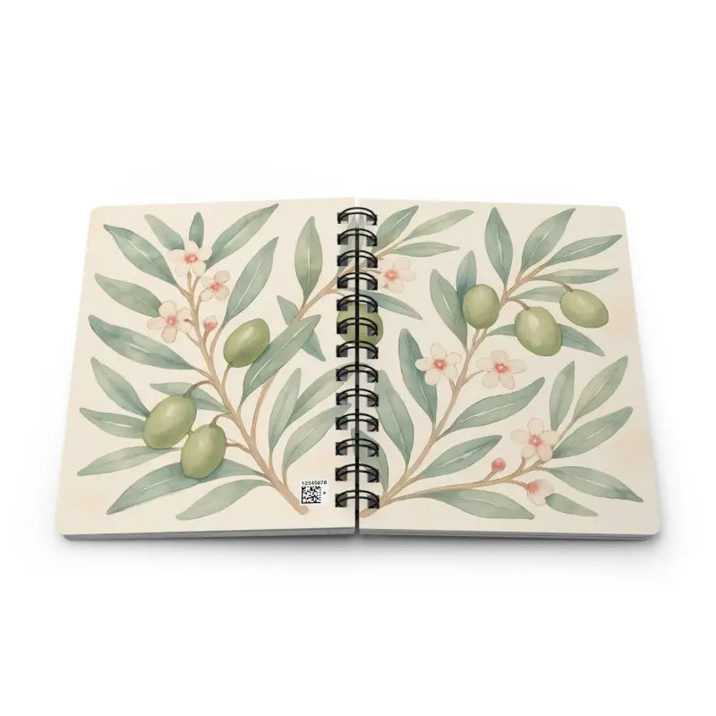 This branch spiral journal pops with leafy greens and earthy browns, wrapped around delicate florals. You’ll spot gentle swirls of olive motifs dancing against a white backdrop, giving off a calm, nature-inspired vibe that feels like a stroll through an olive grove.