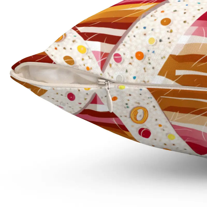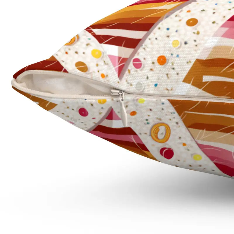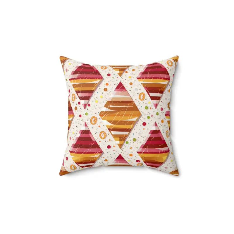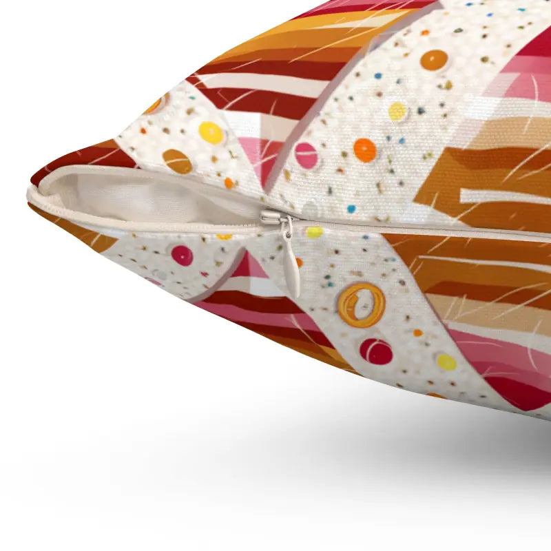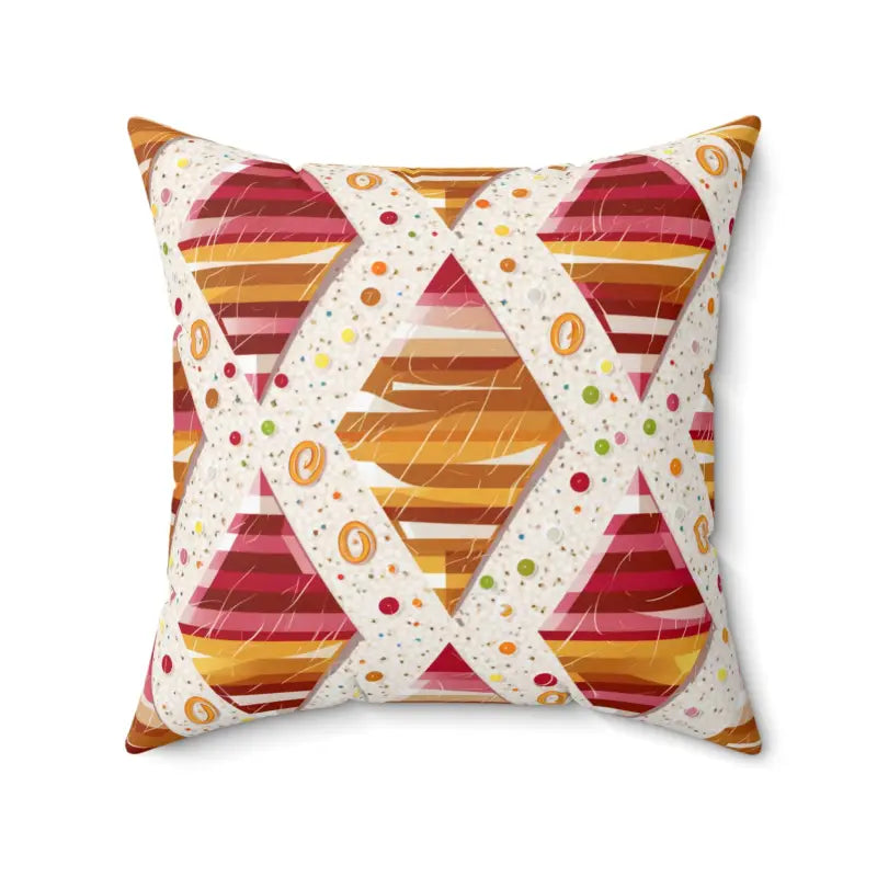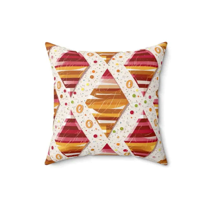 Orange Triangular pattern, Spun Polyester Square Pillow. Transform your living space with these stunning indoor pillows, available in various sizes. Crafted for both style and comfort, they make a bold statement while creating a cozy atmosphere. Each pillow features a 100% Polyester cover and a matching 100% Polyester insert. With double-sided prints and a concealed zipper, these pillows are both chic and practical. Please note, this is a pre-constructed item, and the size may vary by +/- 0.5". Give your room the upgrade it deserves!