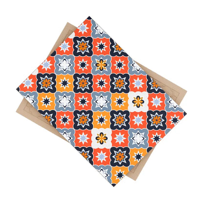 Print: Vibrant geometric dance with orange, yellow, and black tones creates a stunning visual effect.
