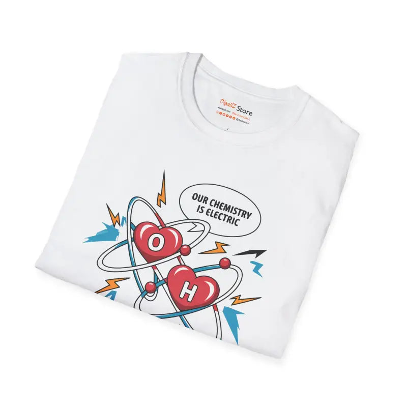 Experience the Buzz with the Electric Chemistry Vibes Unisex Softstyle T-Shirt! This tee is not just apparel—it's a lifestyle choice. Crafted from 100% cotton for supreme softness, this t-shirt feels like a gentle hug, wrapping you in stylish comfort. With durable twill tape shoulders and a ribbed collar that keeps its shape, it's built to last wear after wear. The seamless sides enhance the fit, making it a wardrobe must-have.