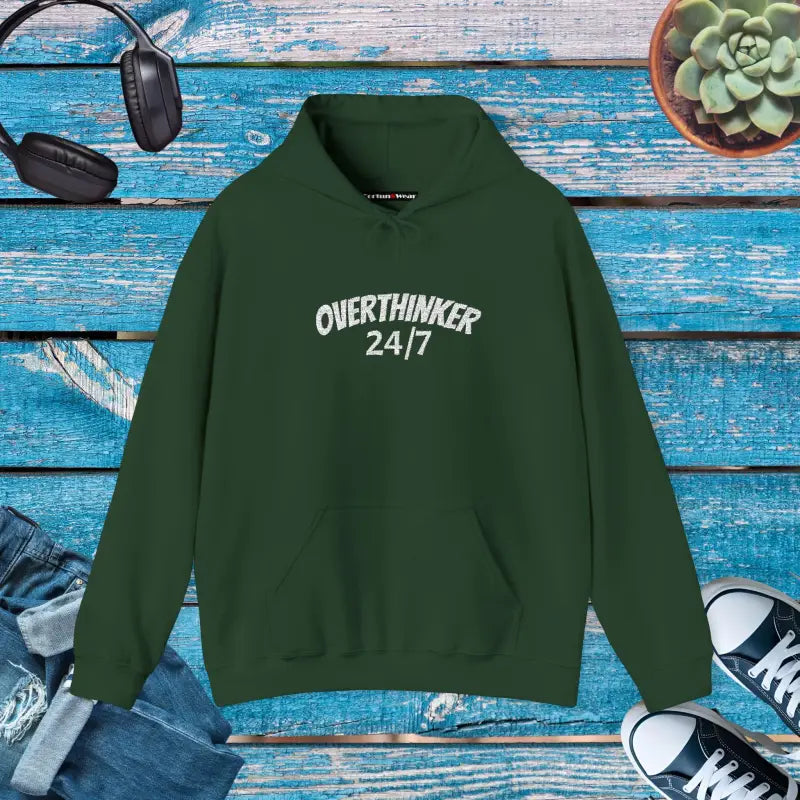 Overthinker 24 x 7 Unisex Hoodie Sweatshirt Heavy Blend Soft Warm Cozy
