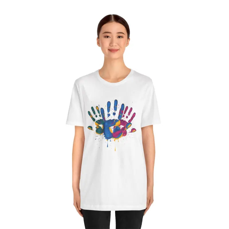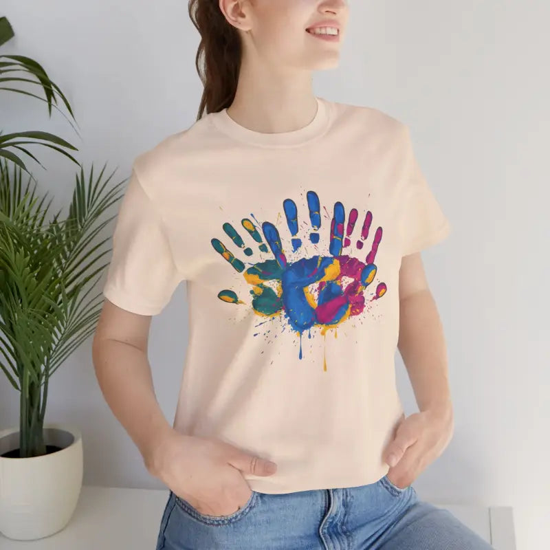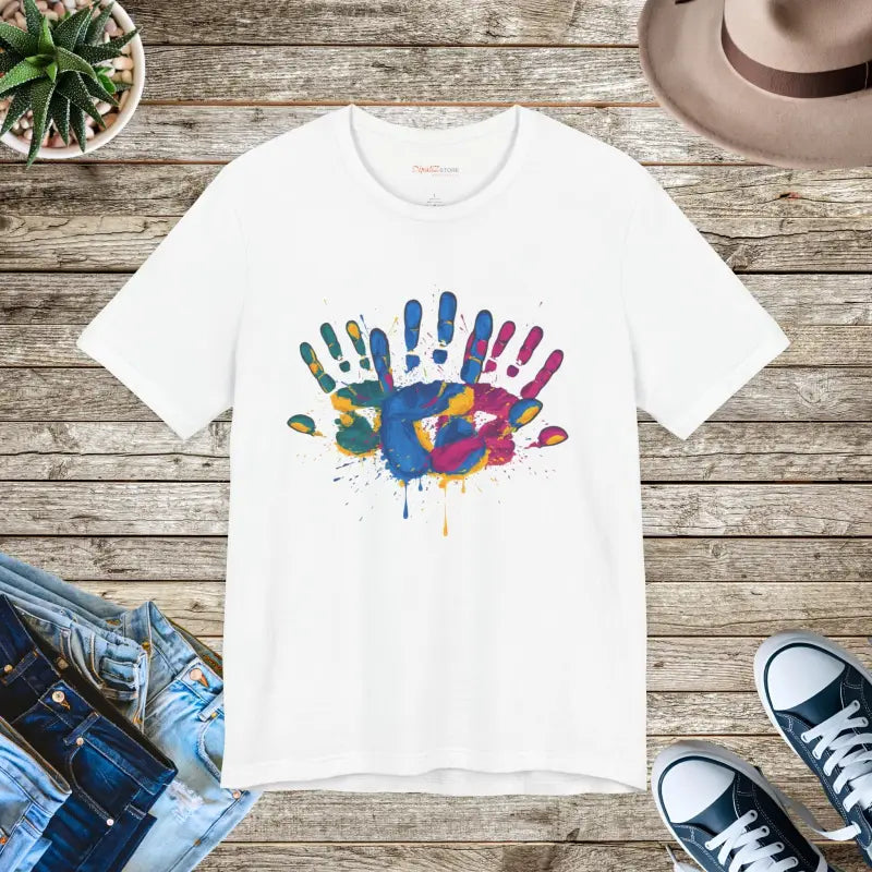Elevate your everyday style with this stunning unisex jersey short sleeve tee featuring the exclusive Painted Palms print from DipaliZ. Slip into pure comfort and make a bold statement that turns heads wherever you go. This isn't just another shirt in your drawer—it's your new go-to favorite for expressing your unique personality while supporting a greener planet.