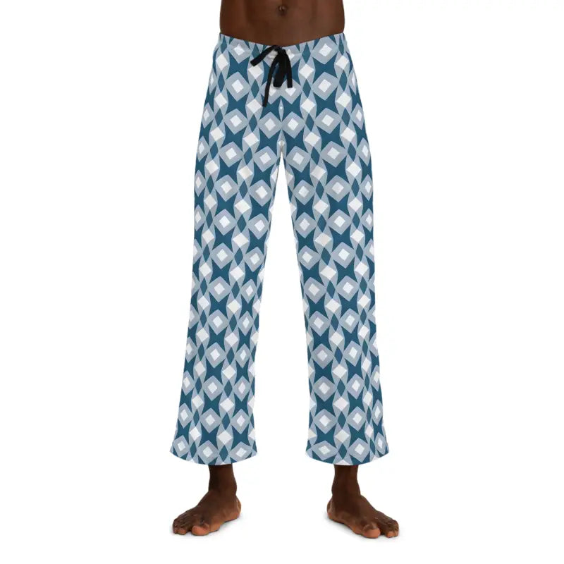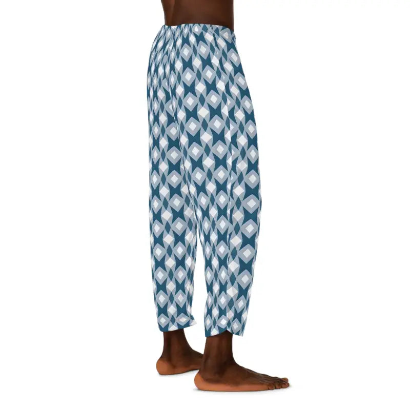 Men's Pajama Pants - White Blue Pattern Comfort - DipaliZ