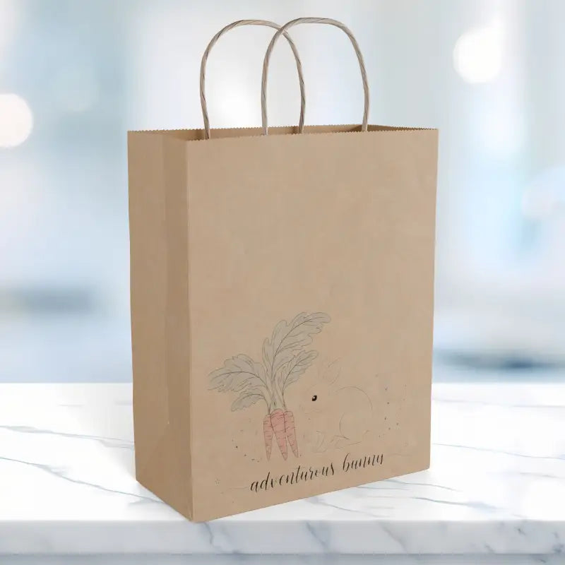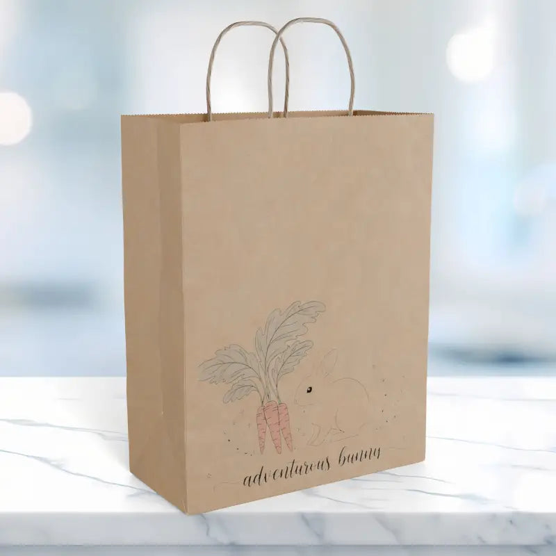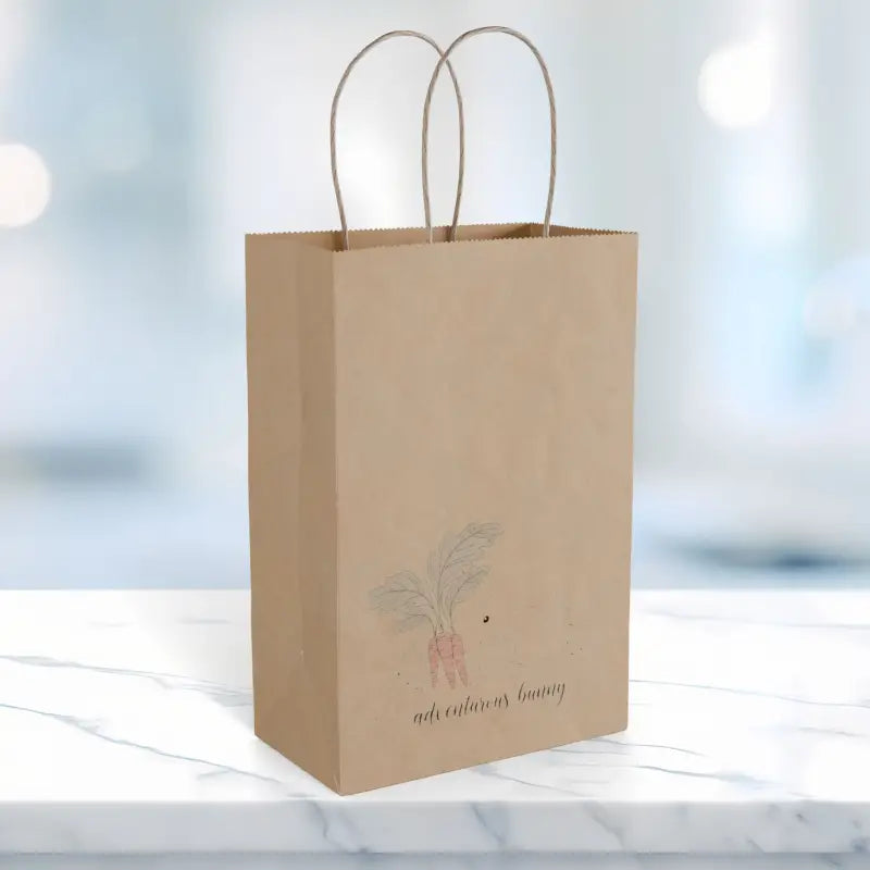 Picture yourself strolling through a bustling Saturday morning farmers market, the sun warming your shoulders as you reach for this charming paper gift bag adorned with a delicate soft watercolor carrot that whispers of homegrown goodness and simple pleasures. This isn't just another throwaway bag—it's a thoughtfully crafted paper gift that transforms ordinary errands into moments of rustic beauty, whether you're gathering heirloom tomatoes from local vendors or surprising a friend with freshly baked sourdough wrapped in linen. The gentle watercolor illustration sits near the bottom of the portrait-oriented design, leaving generous clean space above that lets the artwork breathe while giving you room to tuck in everything from mason jars of preserves to bundles of lavender tied with twine. Those sturdy twisted paper handles feel substantial and familiar, distributing weight evenly across your palm so you can carry your treasures with confidence and comfort. The reinforced flat bottom construction opens wide and stands upright on its own, making loading and unloading effortless whether you're packing up goodies for a potluck, creating a welcome basket for new neighbors, organizing craft fair purchases, delivering homemade treats to a teacher, or assembling a thoughtful care package for someone who needs a little garden-inspired cheer.