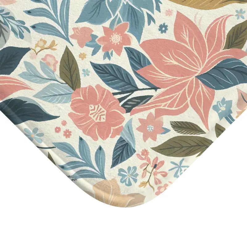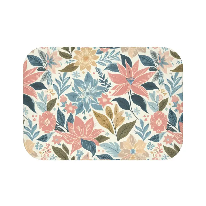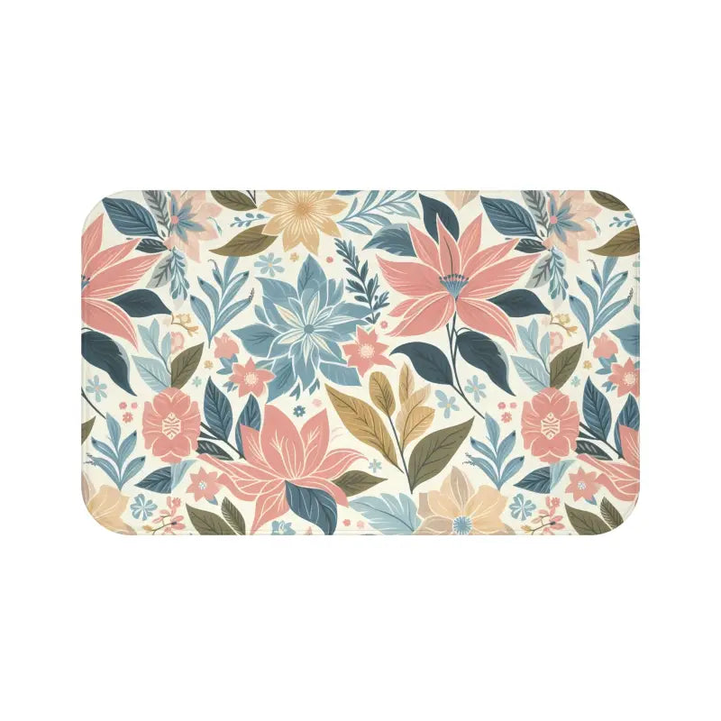 Pastel floral pattern, Bath Mat. Beautiful mat for the most private room in one's house. This bath mat is as practical as it is stylish - the anti-slip backing keeps the bath mat firmly in place and reduces the risk of slipping.