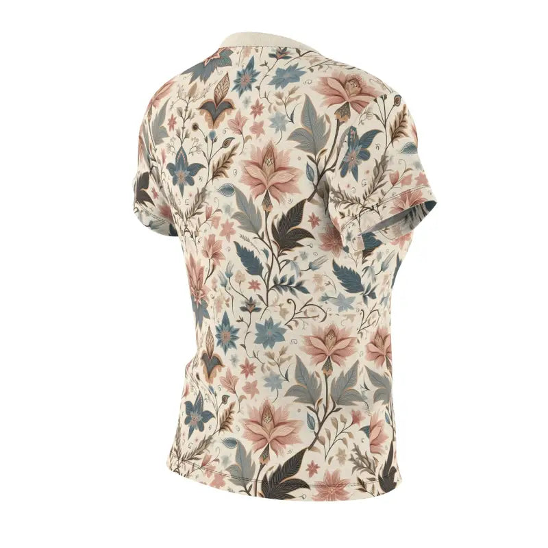 Pastel Floral pattern, Women's AOP Cut & Sew Tee. Experience timeless style and unparalleled comfort with this exquisite AOP t-shirt. Crafted with utmost attention to detail, it effortlessly captivates from every perspective. Embodying the essence of boundless creativity, it empowers you to shine brightly amidst a sea of individuals.