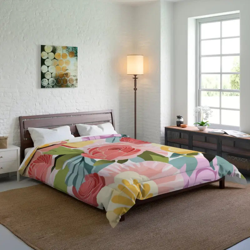 Pastel flowers pattern, Comforter, DipaliZ. Comfy, fluffy, and warm. Cozy up underneath our snug blanket for a deep and relaxing sleep. Highlight these premium quality blankets with some unique designs and your home will be lit up with them. This blanket is the perfect solution for cold days in bed with coffee, waiting for the morning light to peak through the window and wake up the house.