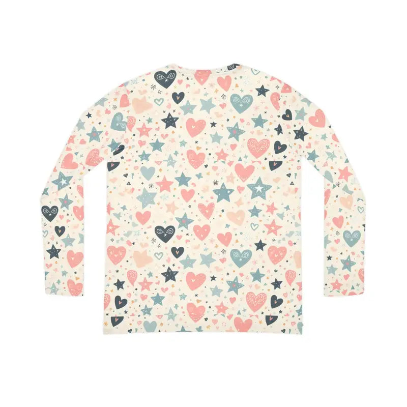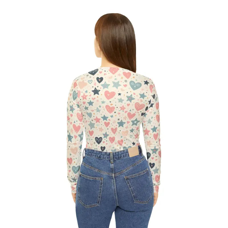 Dive into a pastel dreamscape with this trendy long sleeve piece that's all about chic vibes and comfort. The eye-catching pastel hearts design dances across high-quality fabric, combining 95% polyester with 5% spandex for a fit that feels just right. Perfect for any event, the fashionable v-neck cut adds a touch of sophistication to your everyday look while ensuring versatility and ease of movement.