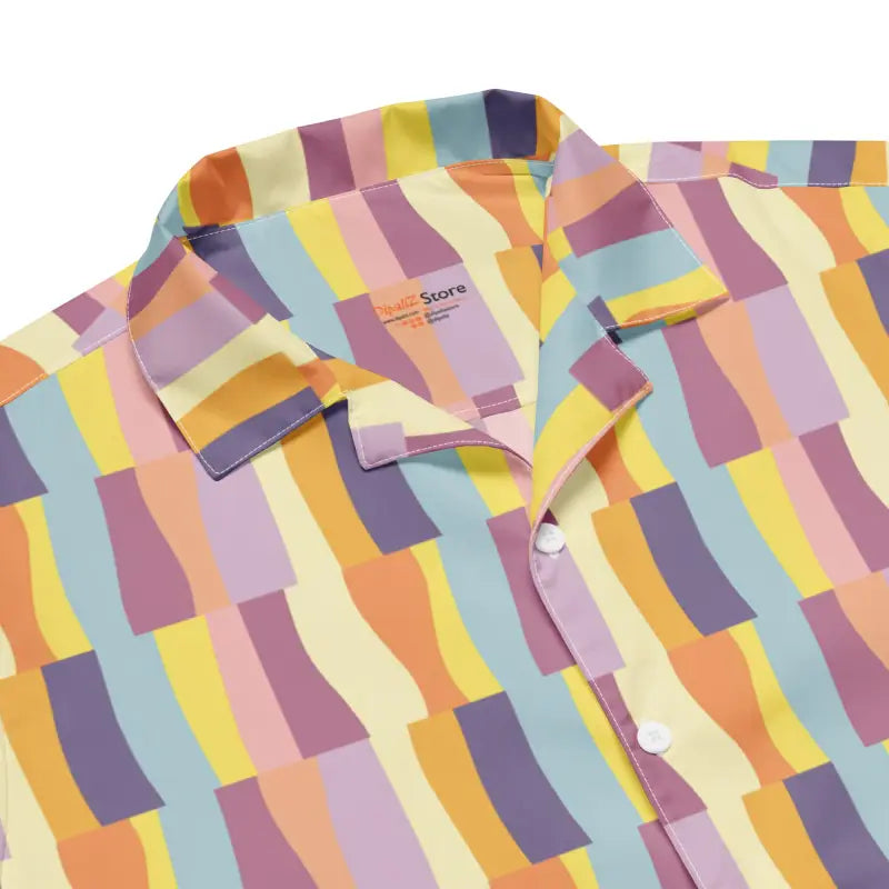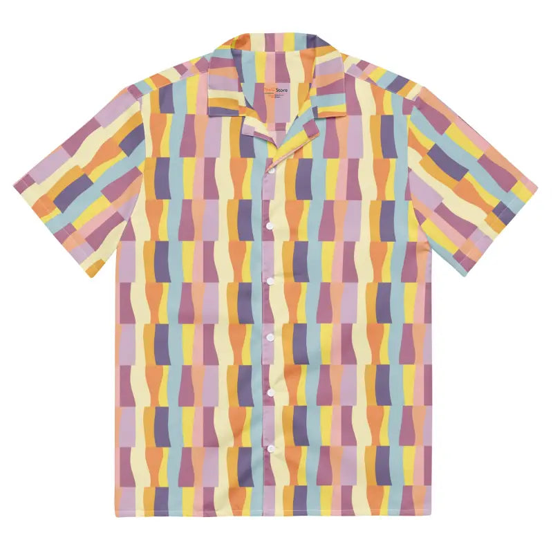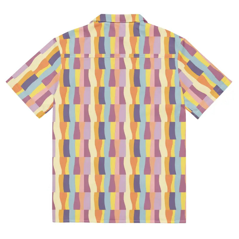 This material button shirt blends the best of style, sustainability, and comfort. With the unbeatable combo of a trendy pastel pattern, moisture wicking performance, and eco-friendly recycled material button design, there's no reason to miss out. Grab yours now and experience summer like never before!