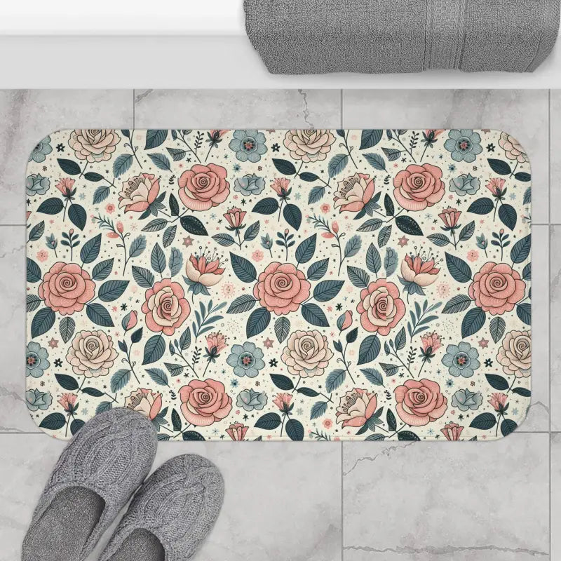 Rose Bath Mat - Elegant Pastel Anti-Slip Backing - DipaliZ