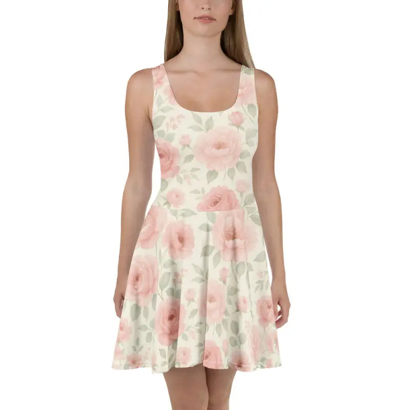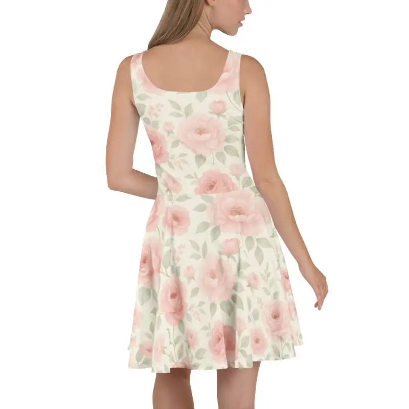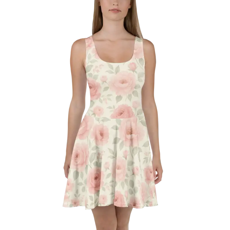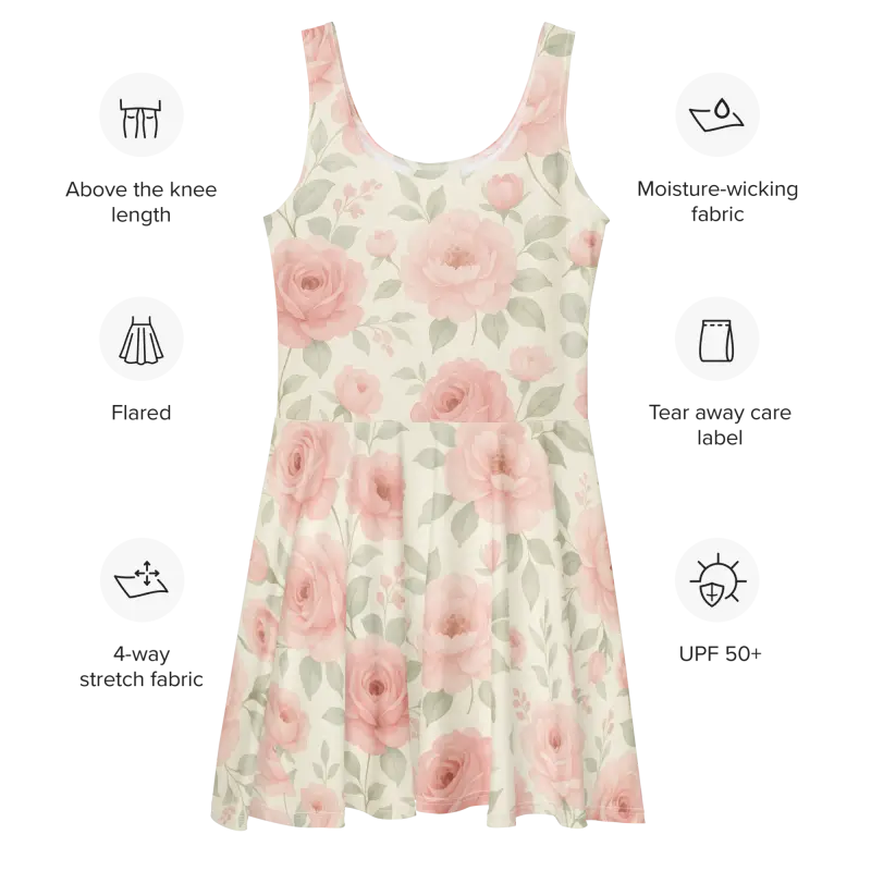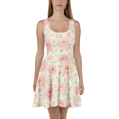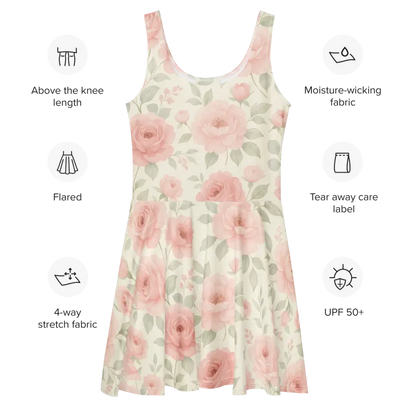 Skater Dress - Premium Quality Pastel Roses Print - DipaliZ