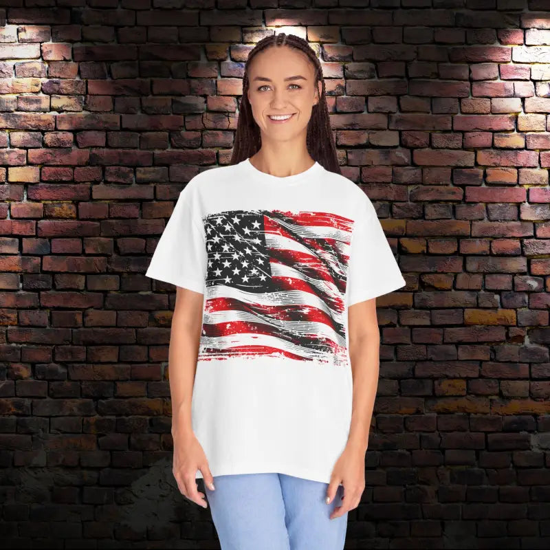 Ready to turn heads and show your pride? Make a statement with this bold patriotic American flag t-shirt that combines eye-catching style with unbeatable comfort, perfect for every occasion.