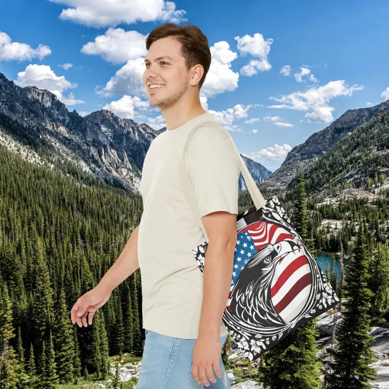 Ready to show off your American spirit in style? Our patriotic eagle tote bag with a bold USA flag design is the perfect accessory for July 4th and beyond.