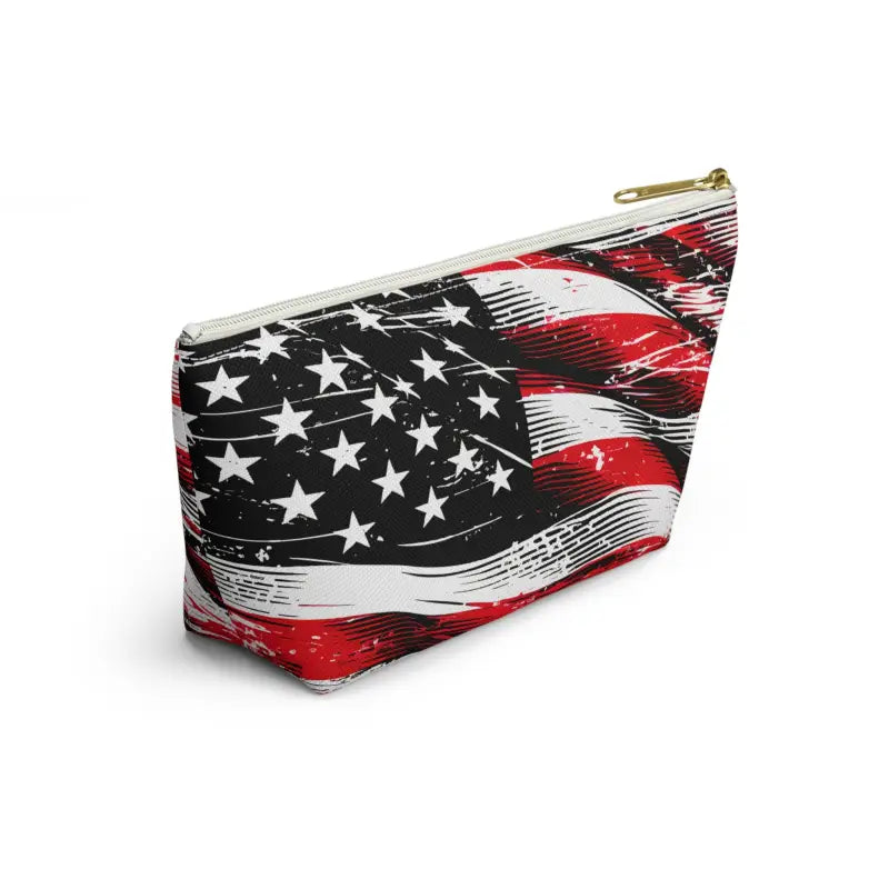 Print: This accessory pouch features a vivid USA flag design that pops with unforgettable red, white, and blue.