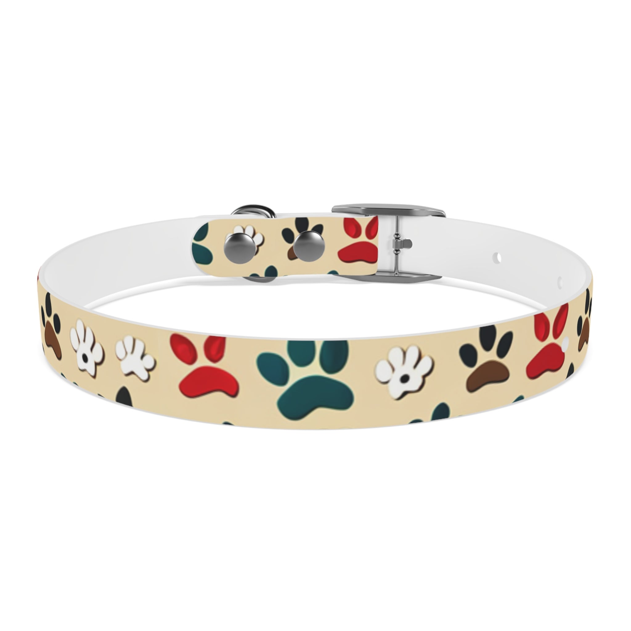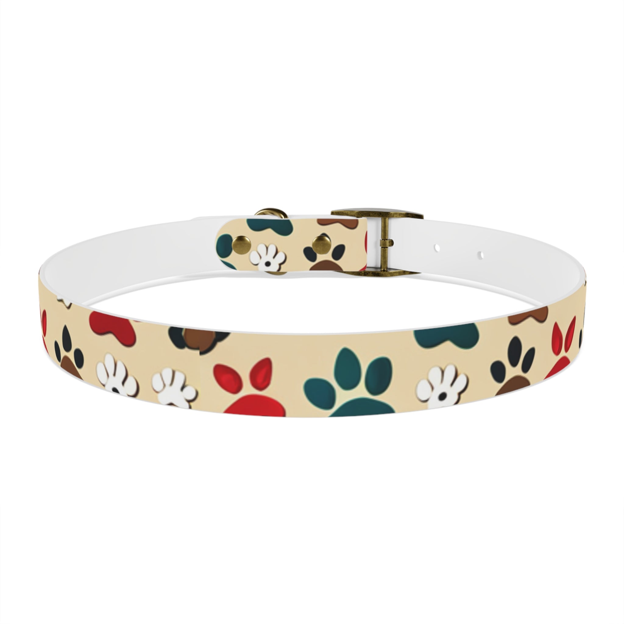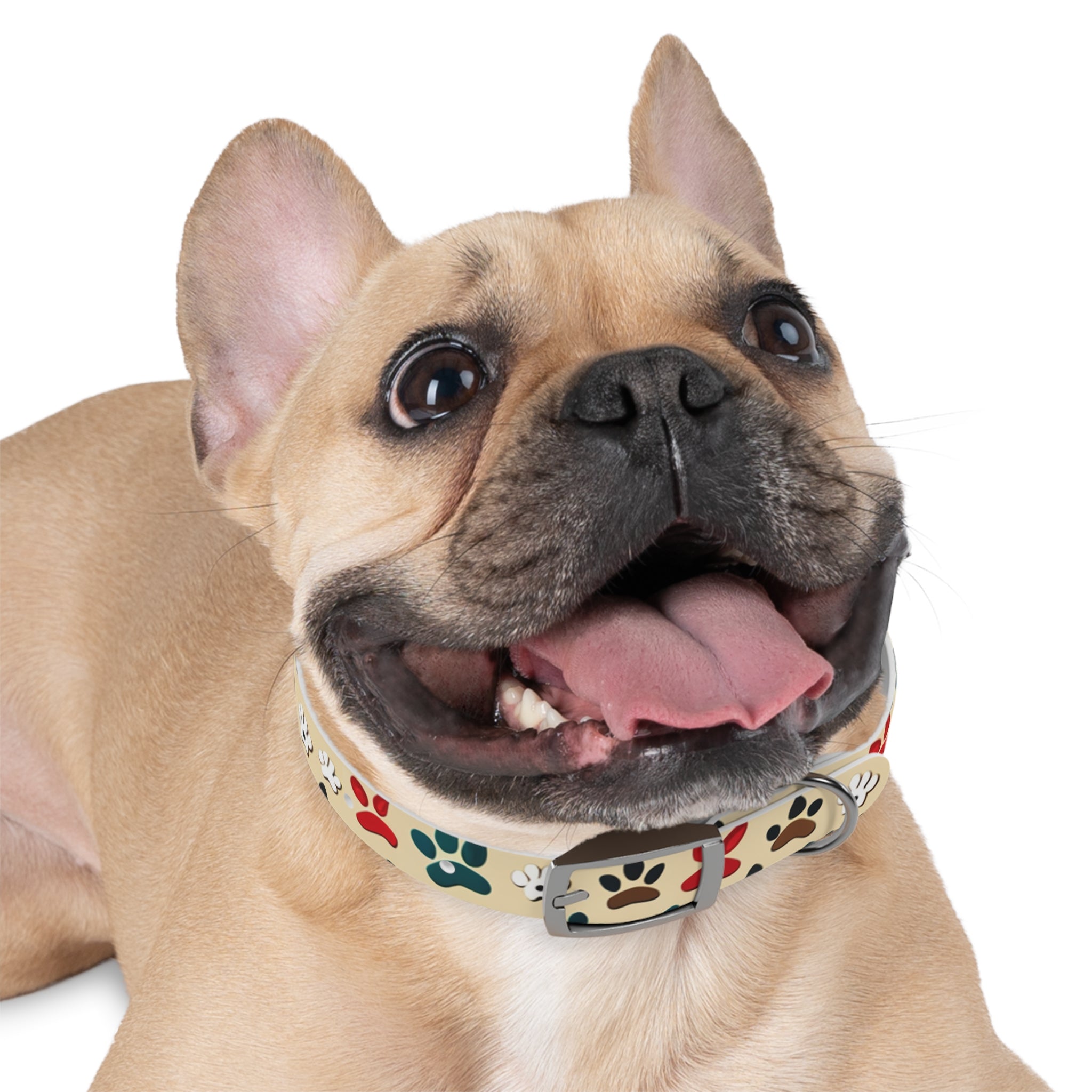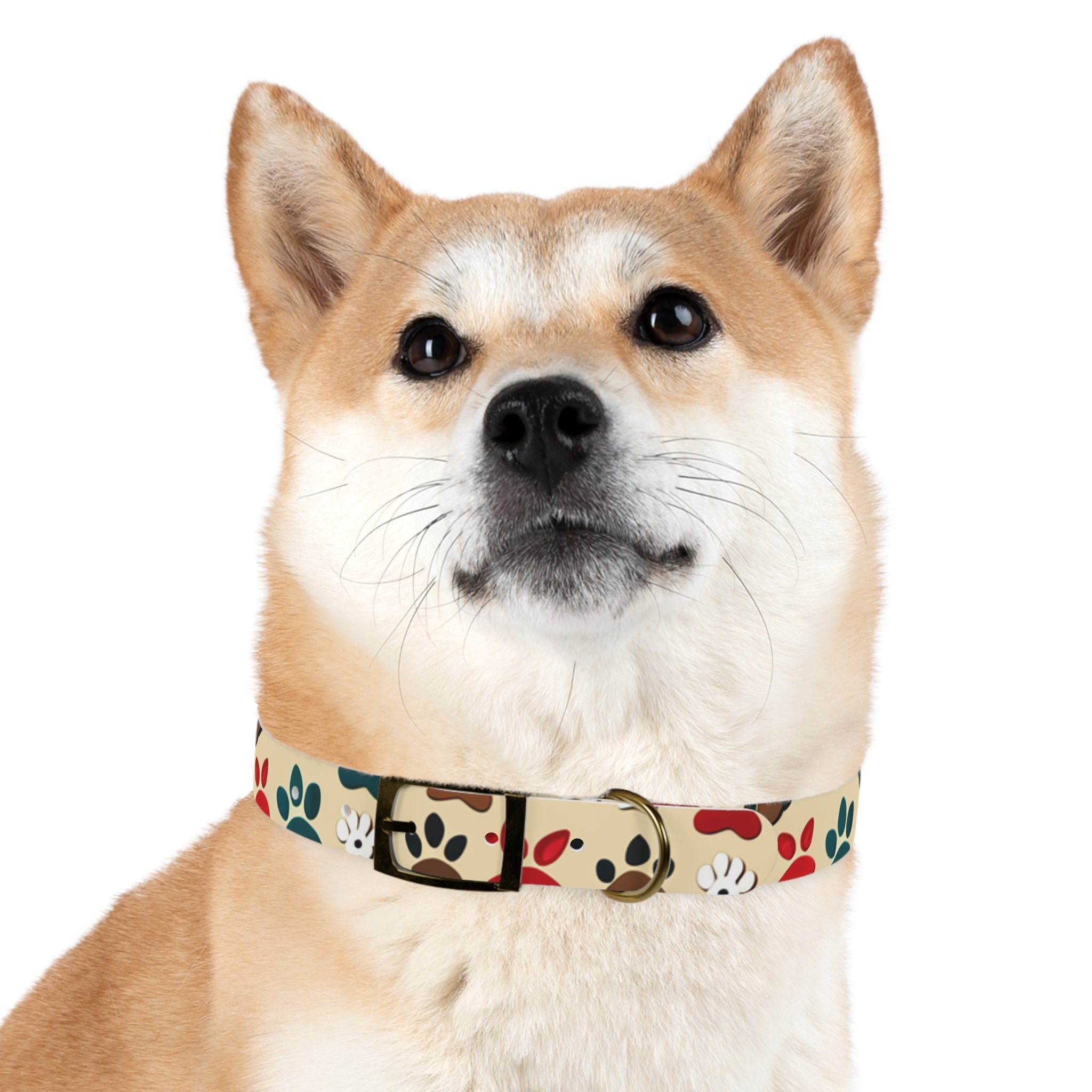 Paw Print Dog Collar — Colorful Red, Teal & Brown Paw Pattern