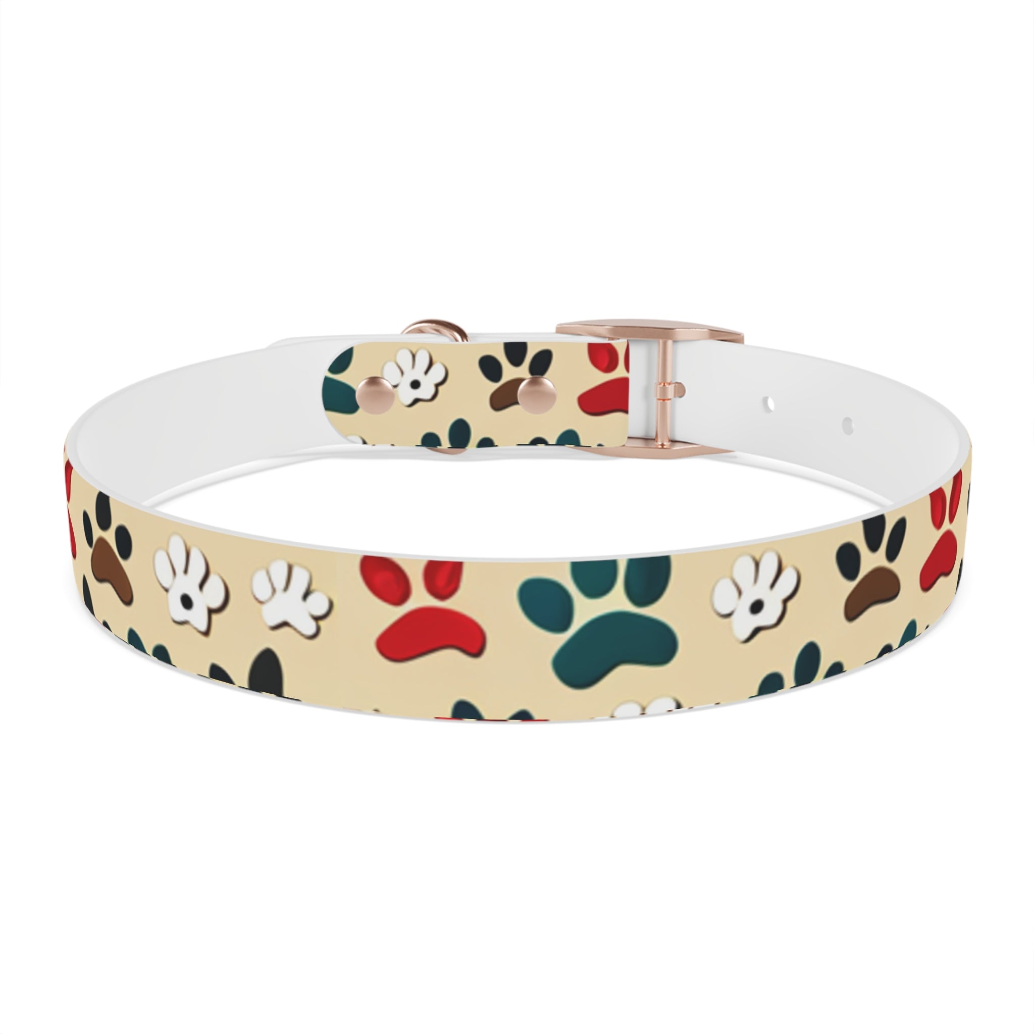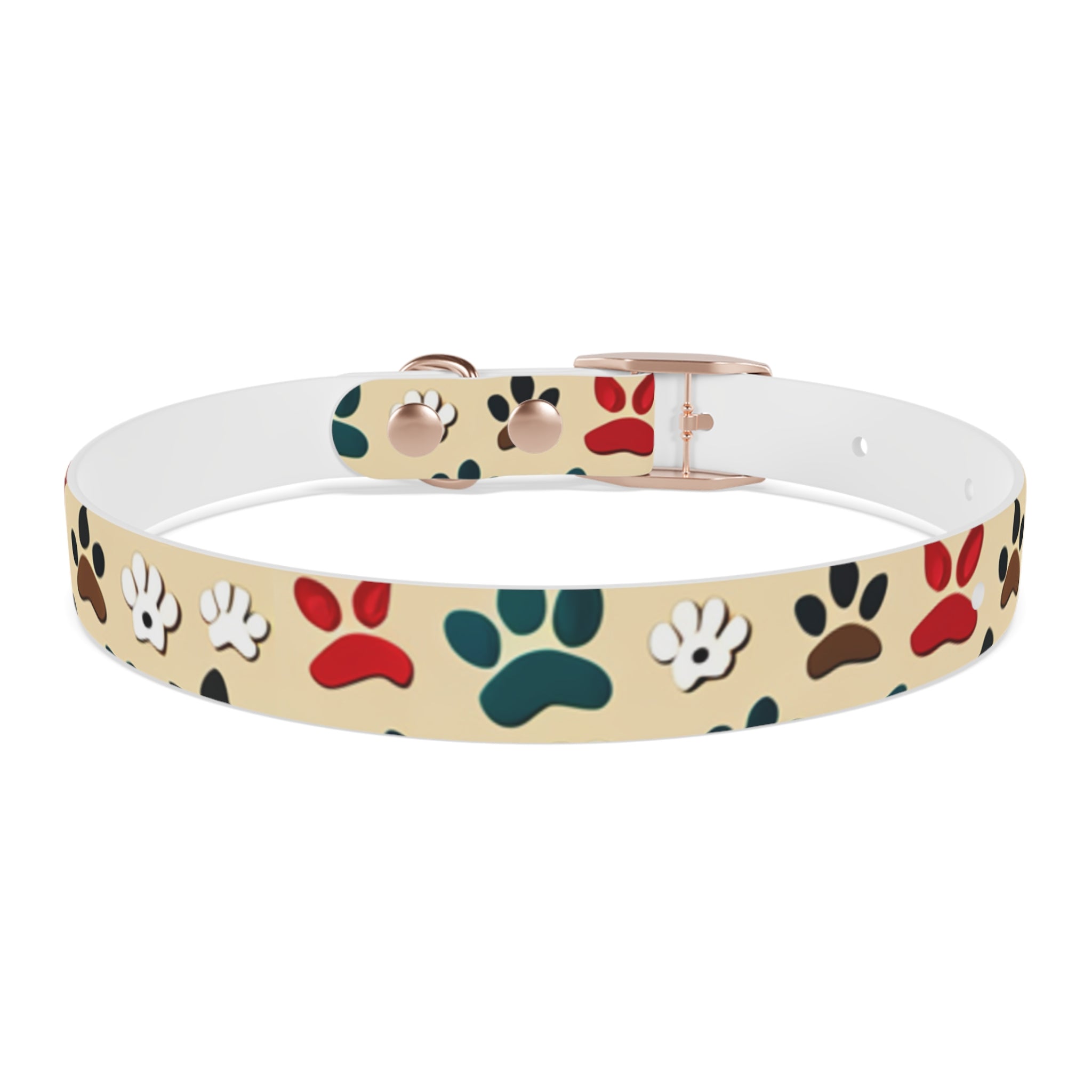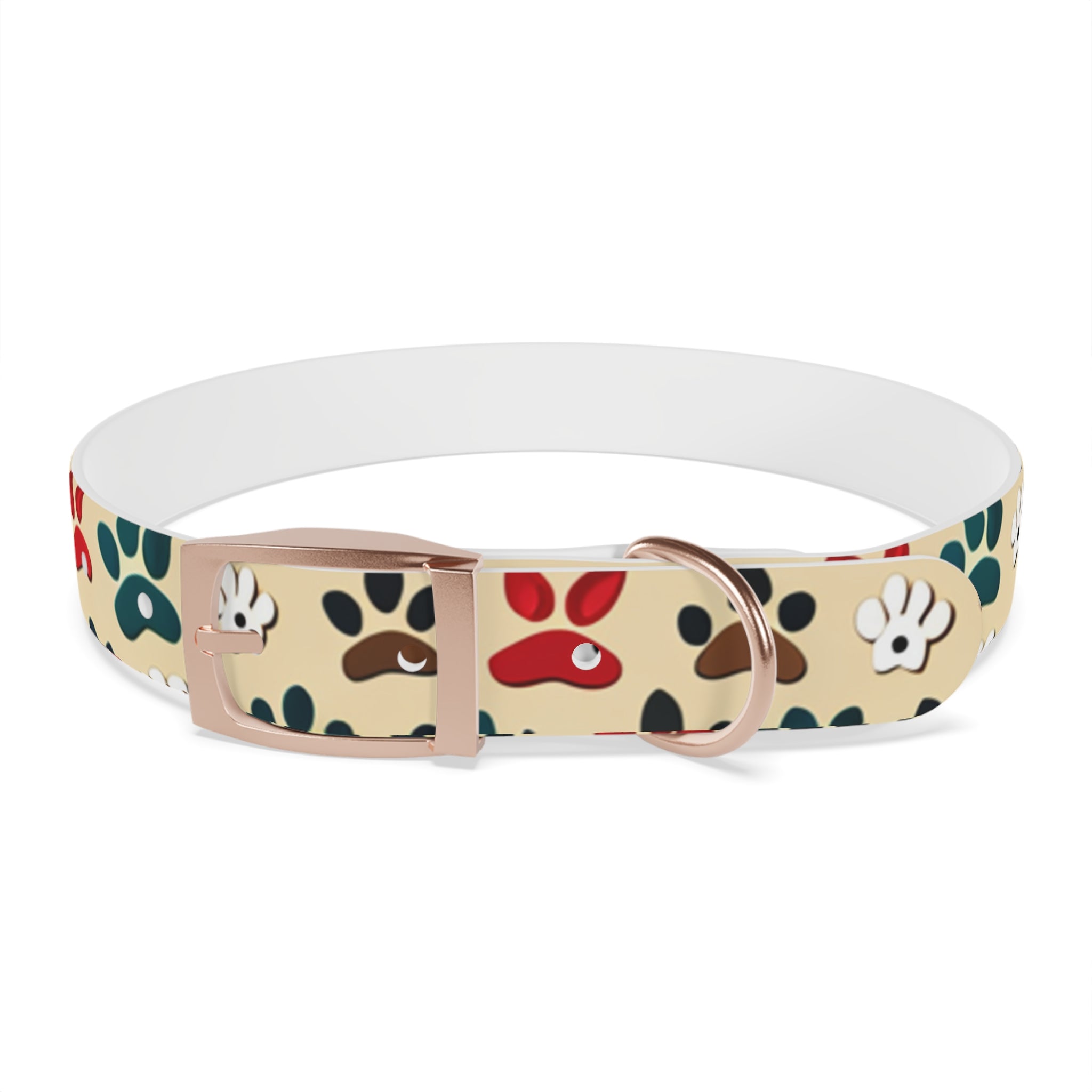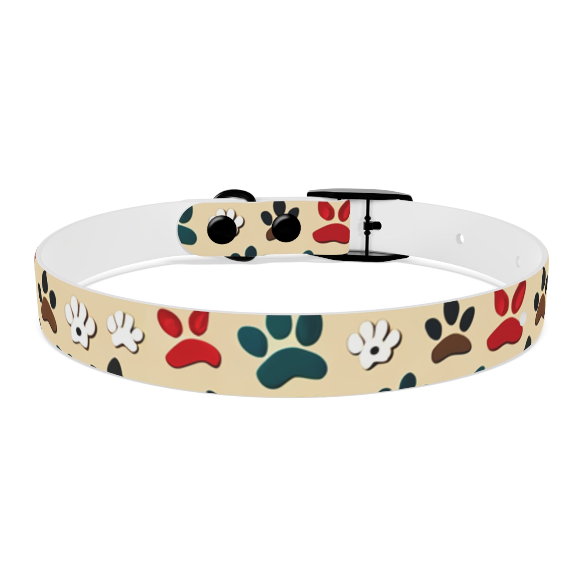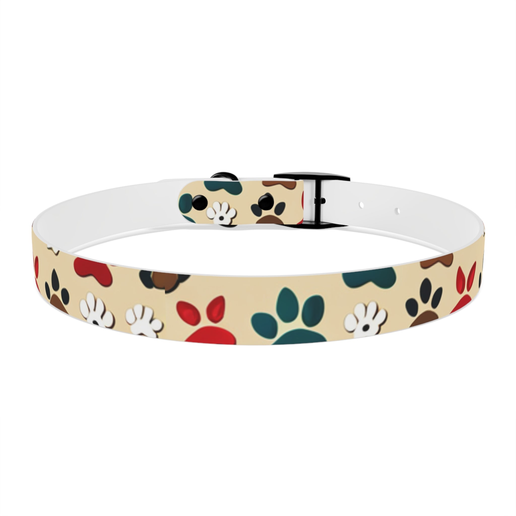 Paw Print Dog Collar — Colorful Red, Teal & Brown Paw Pattern