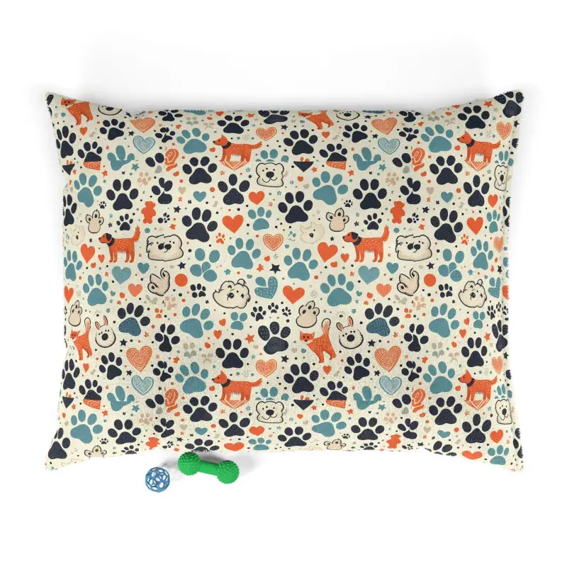 Get ready to spoil your furry companion with the ultimate pet bed that redefines comfort and style. The Furry Friend Pet Bed with Cotton Polyester Print is not just any pet bed – this cozy retreat is designed to elevate your pet’s snuggle time while keeping your furniture free from those playful paws. Imagine your dog relaxing on a luxuriously soft, inviting cotton pet bed that features a vibrant polyester print area. The design boasts discreet paw prints and delightful dog illustrations that add a splash of personality to any room. Every detail has been thoughtfully crafted to ensure durability, style, and maximum comfort for your pet.