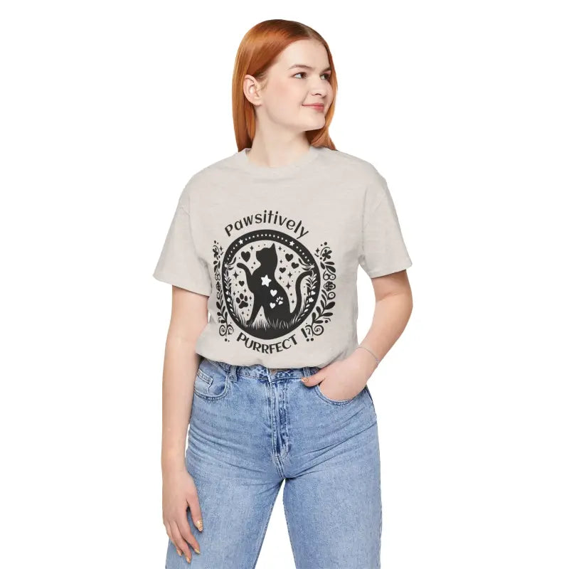 Get ready to rock a fresh look in our Pawsitively Purrfect Cat Lover Tee that brings comfort, style, and a touch of feline fun to your wardrobe. This Unisex Jersey Short Sleeve Tee is designed especially for those who adore our furry friends. With its laid-back charm and standout design, this tee is ideal whether you're lounging at home, heading out with friends, or attending a pet-themed event. It's a must-have for every purrfect cat lover looking to showcase their passion for all things cat.