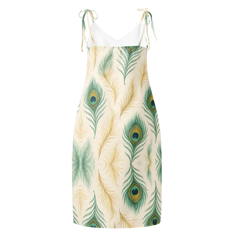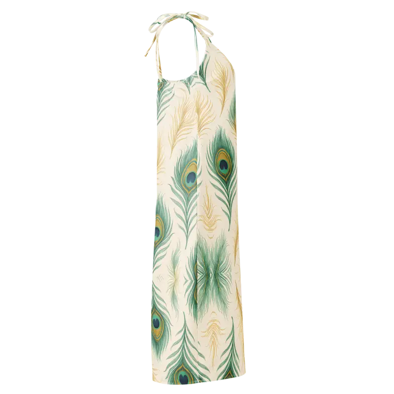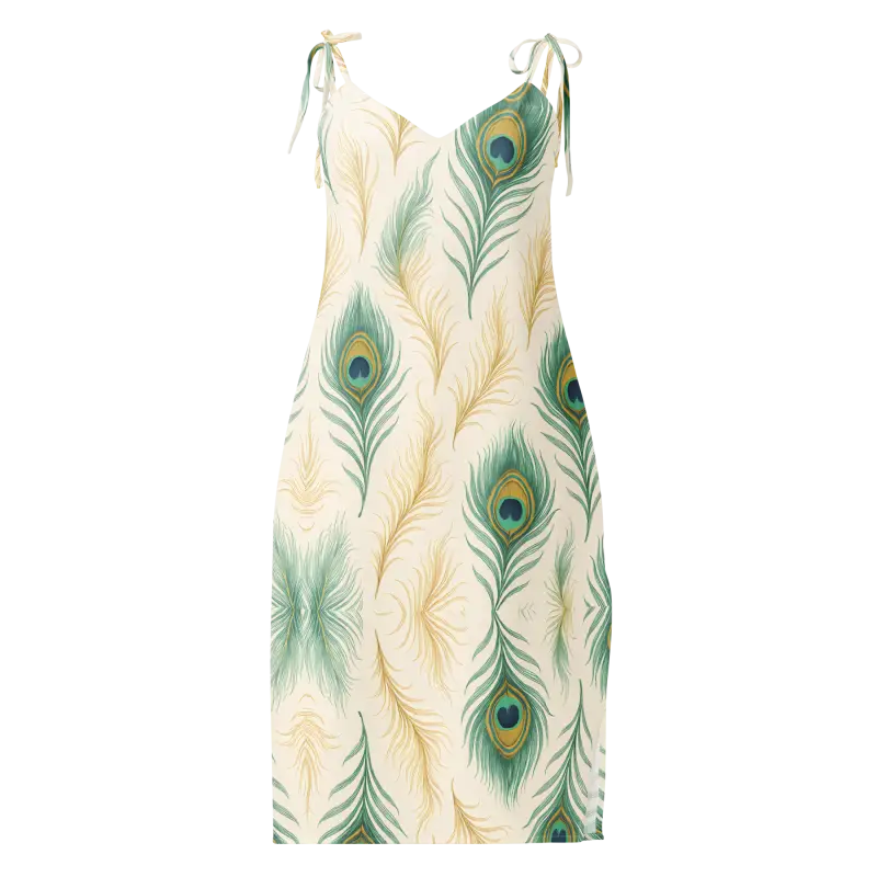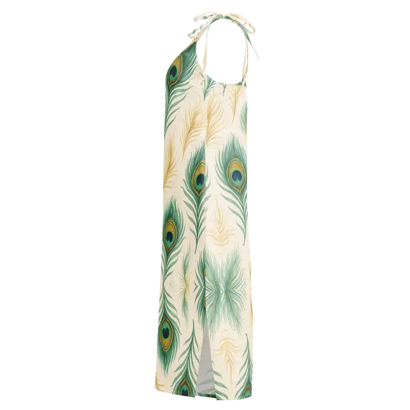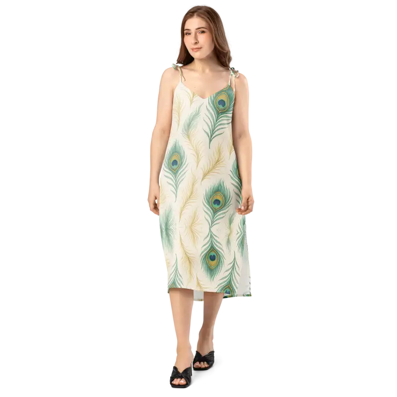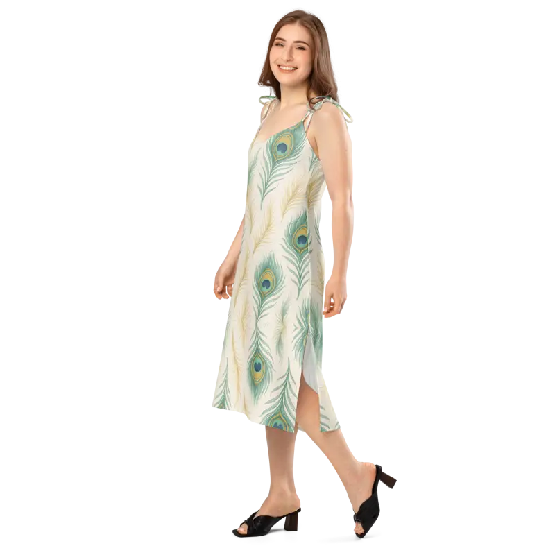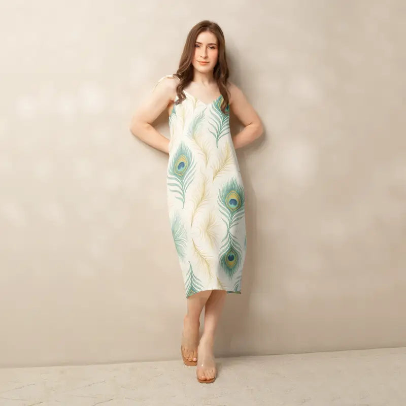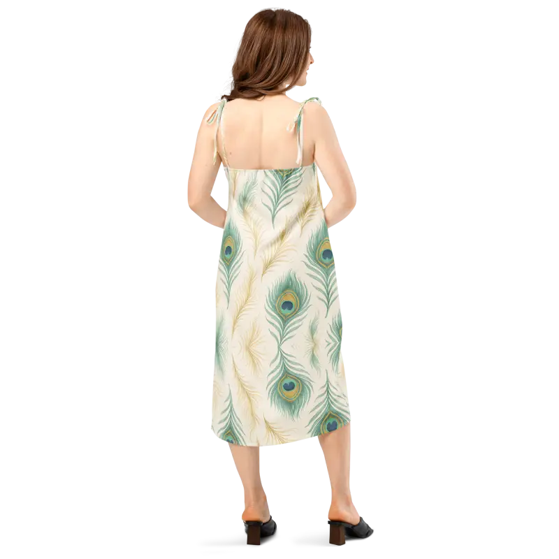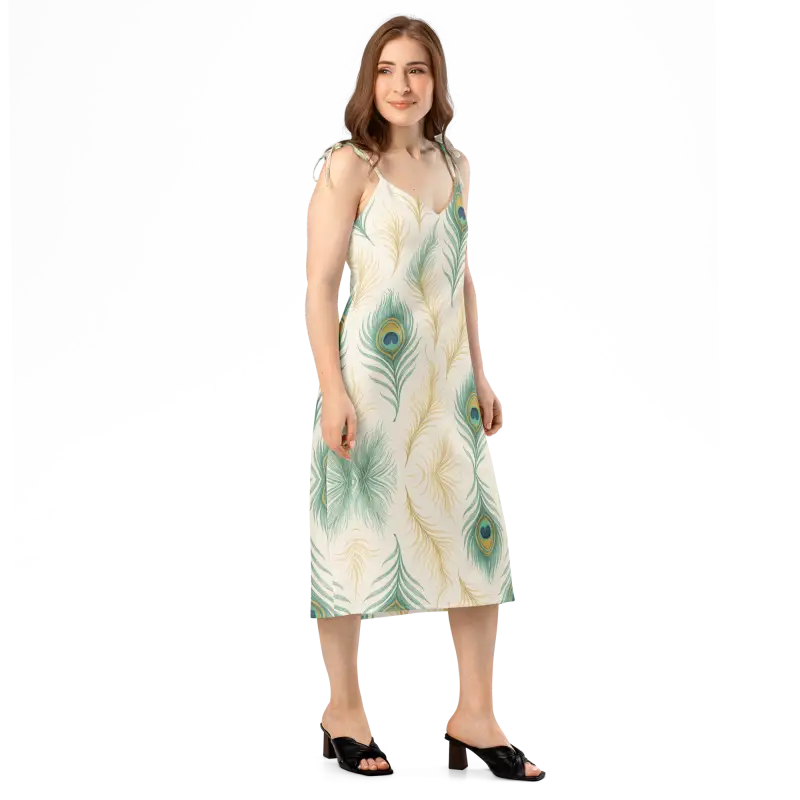 Peacock Feather Midi Dress With Built-In Bra - DipaliZ