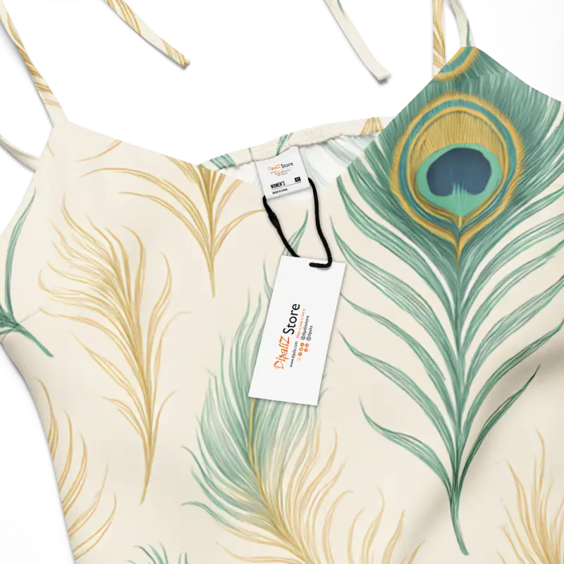 Pattern : Peacock feather tie-strap design created for a look that pops