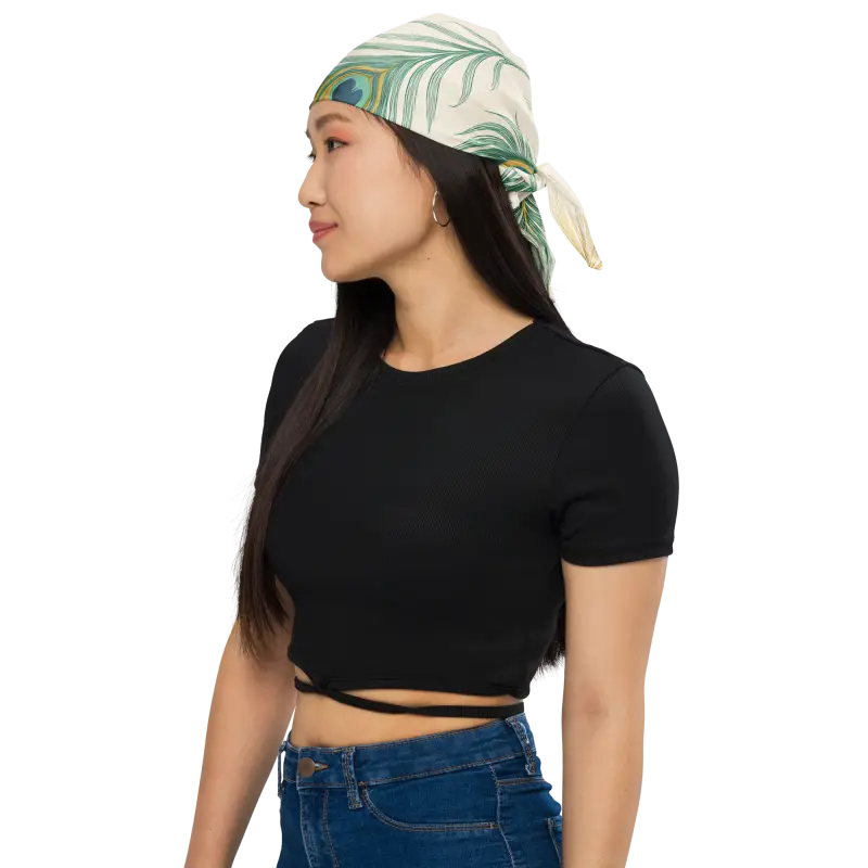 Catch every eye with a vibrant all-over print bandana bursting with peacock feathers and endless mix-and-match flair—your new go-to for modern lifestyle essentials and effortless style.