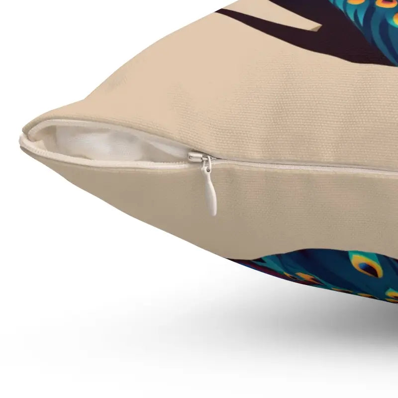 Peacock Spun Polyester Square Pillow. Transform your living space with these stunning indoor pillows, available in various sizes. Crafted for both style and comfort, they make a bold statement while creating a cozy atmosphere. Each pillow features a 100% Polyester cover and a matching 100% Polyester insert. With double-sided prints and a concealed zipper, these pillows are both chic and practical. Please note, this is a pre-constructed item, and the size may vary by +/- 0.5". Give your room the upgrade it deserves!