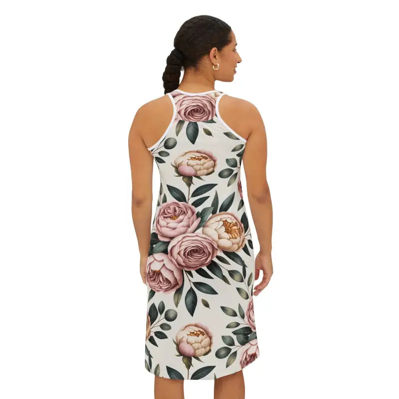 Peonies Floral Racerback High Cut Neckline Dress - DipaliZ
