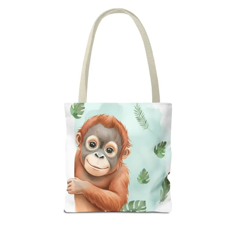 Picture this: you're heading out for the day and you reach for a bag that instantly makes you smile. This personalized baby orangutan tote bag brings that burst of tropical happiness to every single outing. A sweet baby orangutan peers out from lush aquamarine jungle leaves, creating an adorable scene that turns heads at the farmers market, gets compliments at school pickup, and sparks conversations wherever you go. The cheerful design radiates warmth and playfulness while the sturdy construction means this orangutan tote bag handles real life like a champ. Whether you're hauling library books, beach essentials, art supplies, or a full grocery run, this tote delivers both personality and performance in one irresistible package.