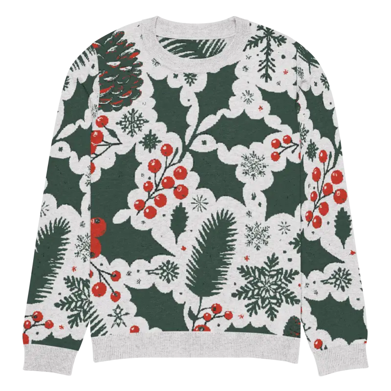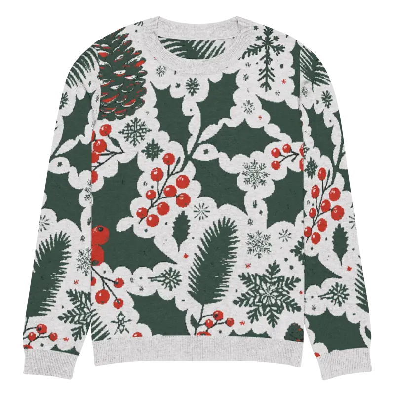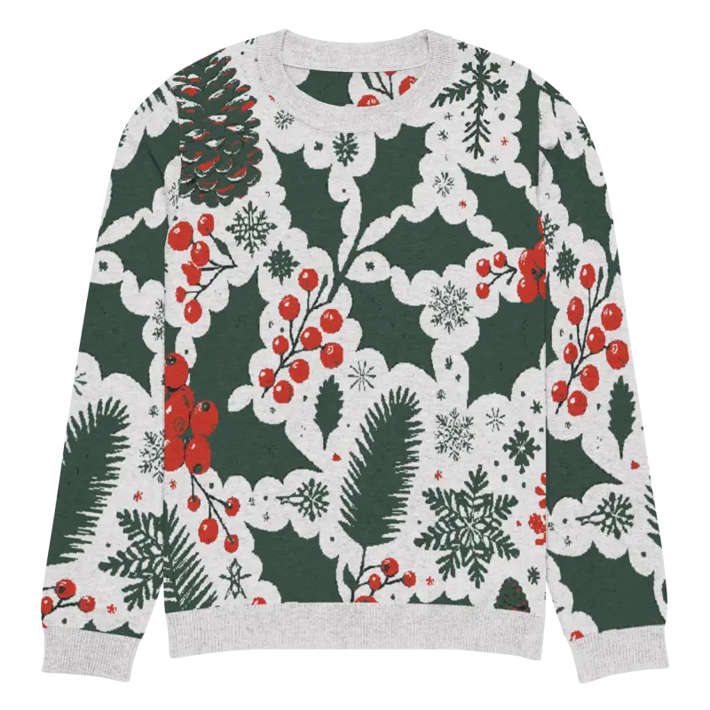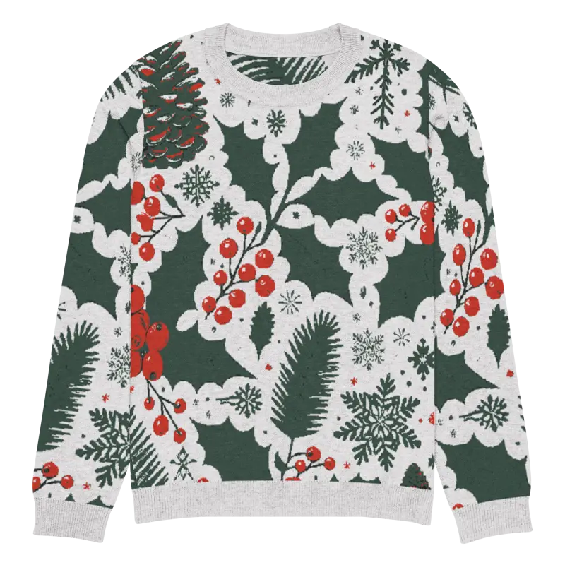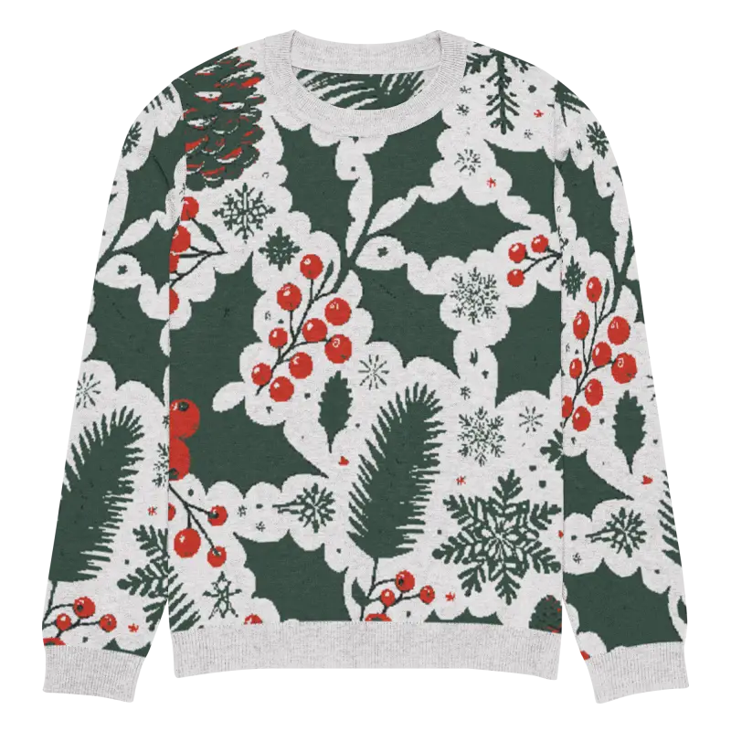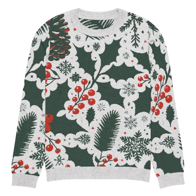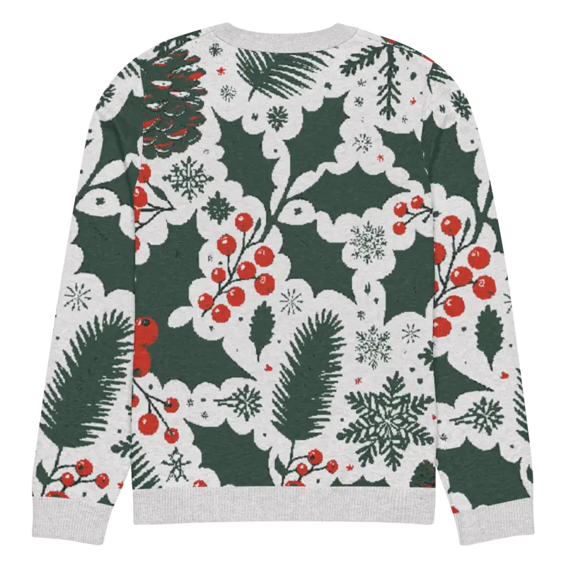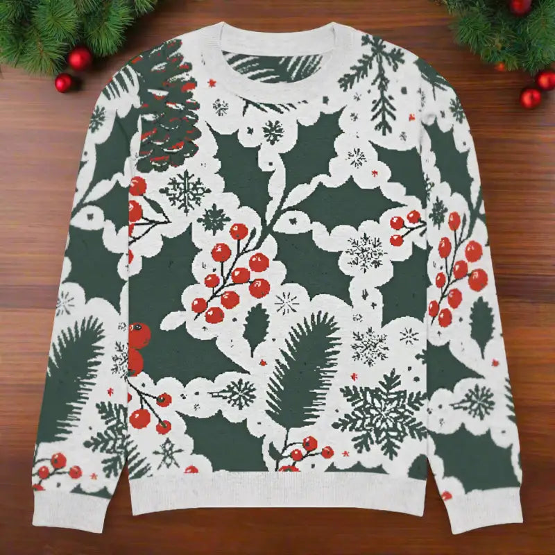 Get ready to embrace the holiday spirit with our Cozy Knitted Crew Neck adorned with charming pine leaves and vibrant Christmas berries. This extra-soft sweater combines comfort with festive style, making it a must-have in your winter wardrobe. Ideal for both a laid-back day paired with jeans or dressed up for those special seasonal gatherings, it's versatile enough for any occasion.