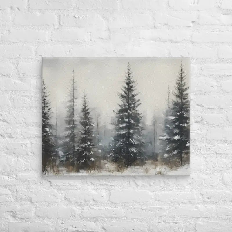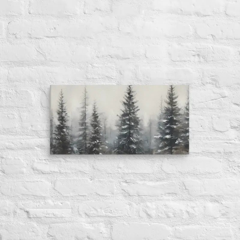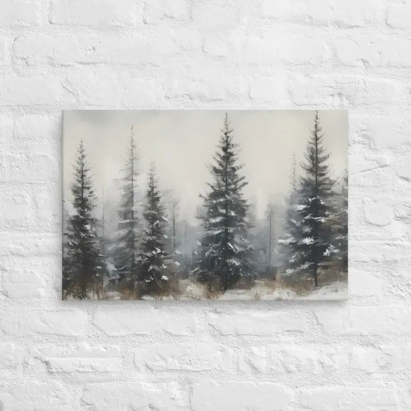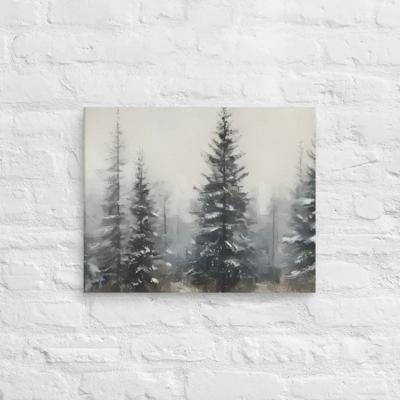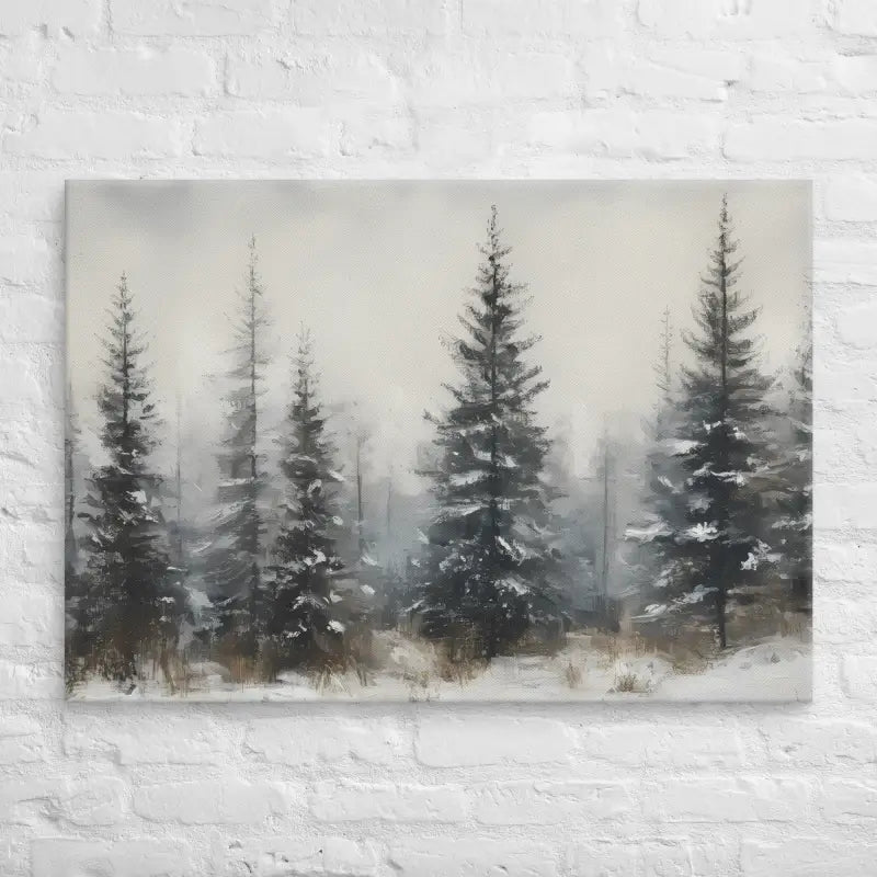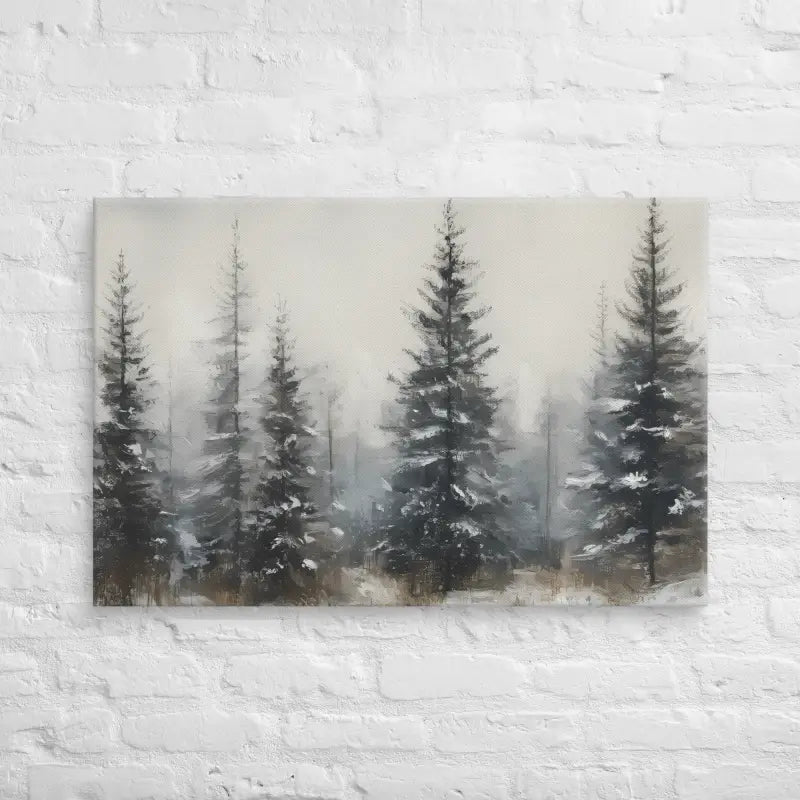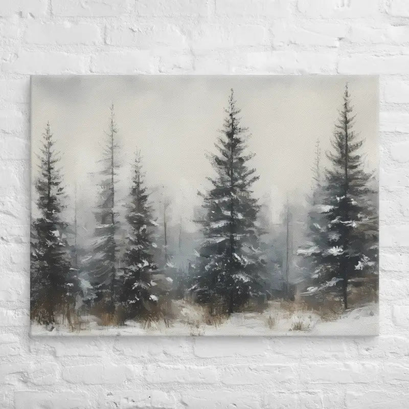 Feel the calm of a snowy forest every time you walk into the room. This serene pine trees canvas brings crisp winter air and timeless charm to any space, making it a must-have for modern lifestyle products online.