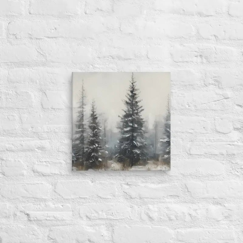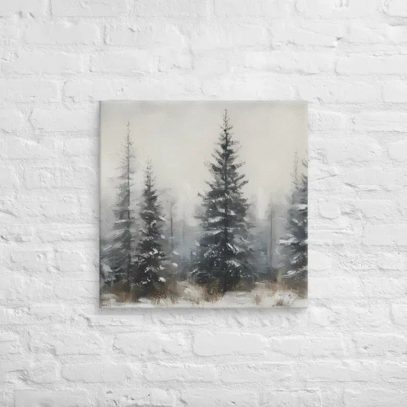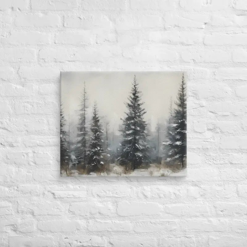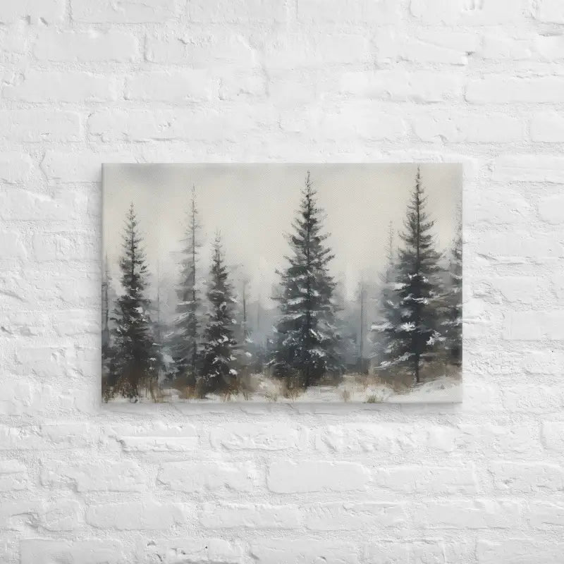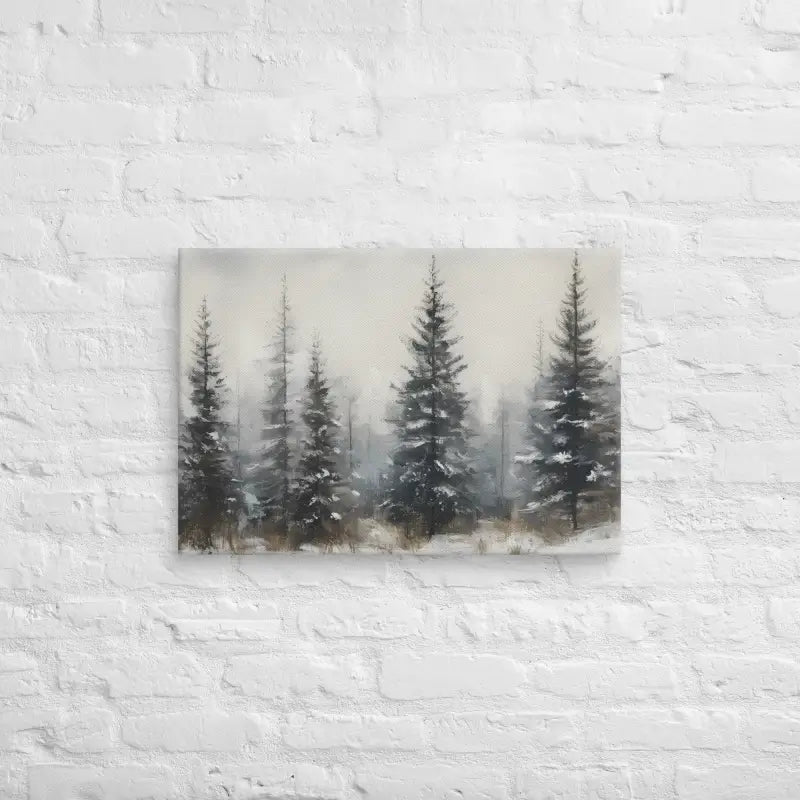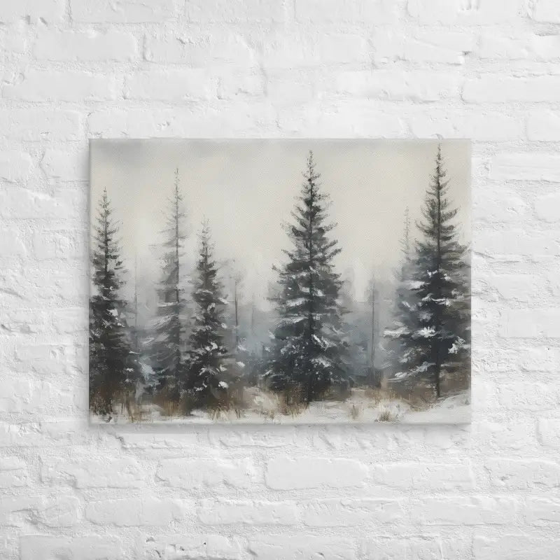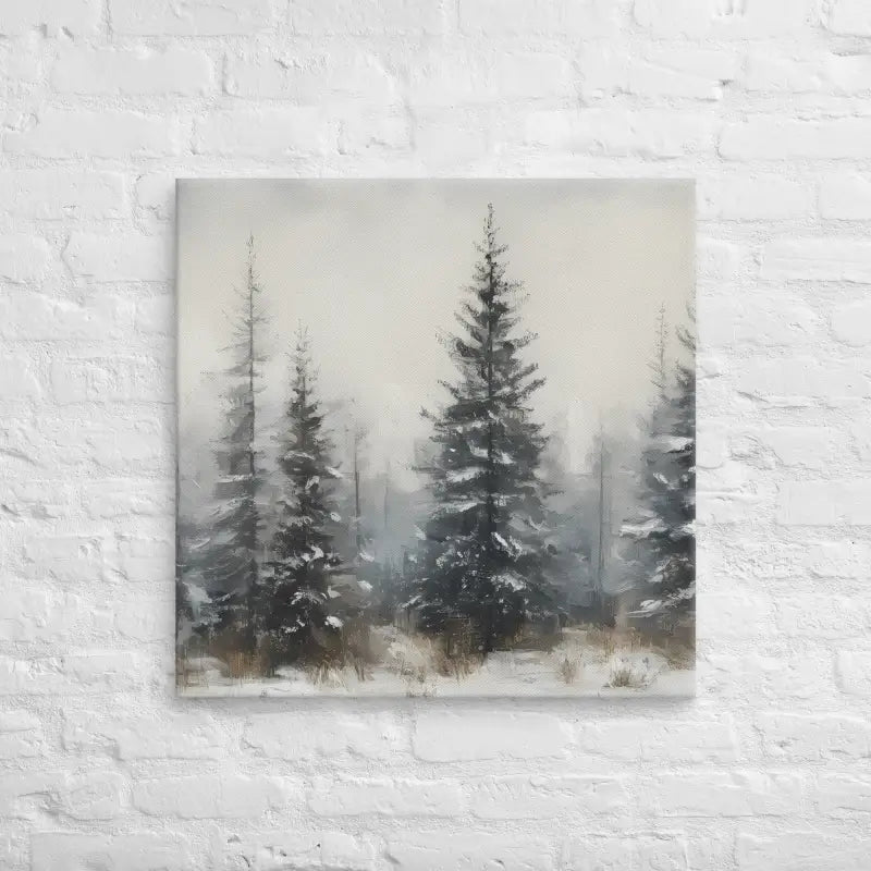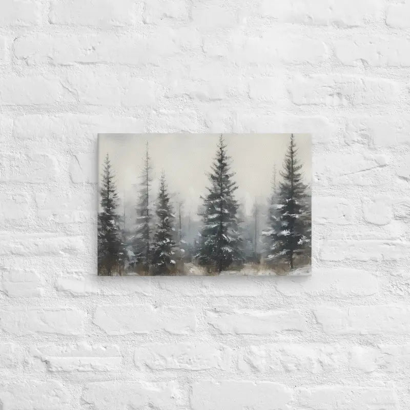Feel the calm of a snowy forest every time you walk into the room. This serene pine trees canvas brings crisp winter air and timeless charm to any space, making it a must-have for modern lifestyle products online.