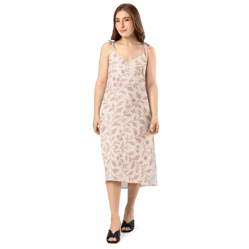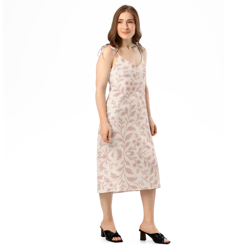 Step into style with our premium quality midi dress featuring a built-in bra and eye-catching pink floral vines for a carefree yet flirty look. This built-in bra design adds comfort while the pink floral vines elevate your style.