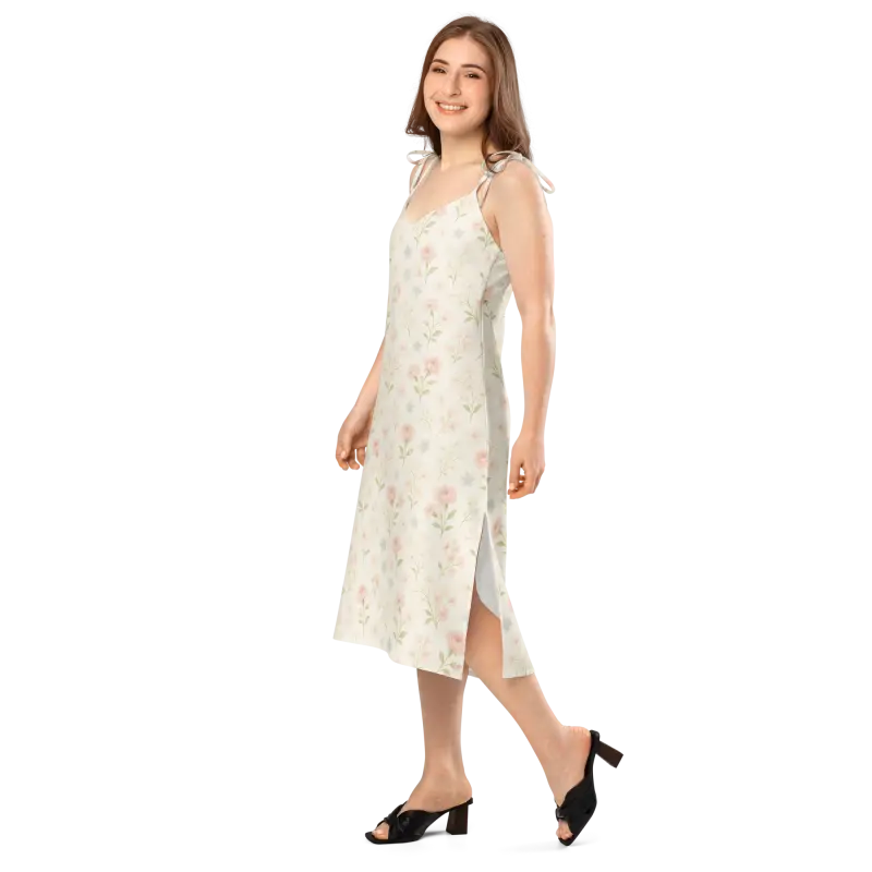 Perfect for both indoor soirées and outdoor adventures, this midi dress with pink flowers and a built-in bra stands out from the crowd with its premium quality design and versatile functionality. Unlike other dresses that may sacrifice comfort for style, our midi dress marries both so you can enjoy a chic, hassle-free look wherever you go.