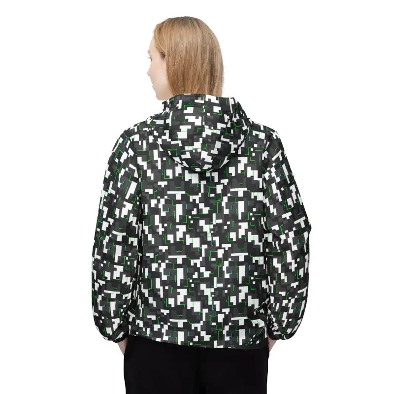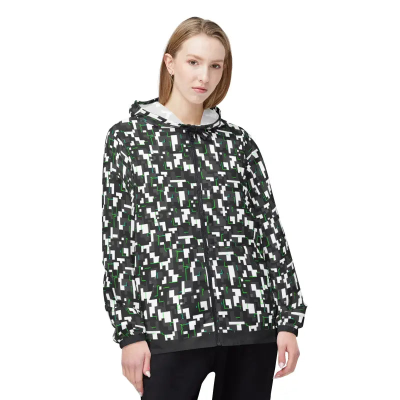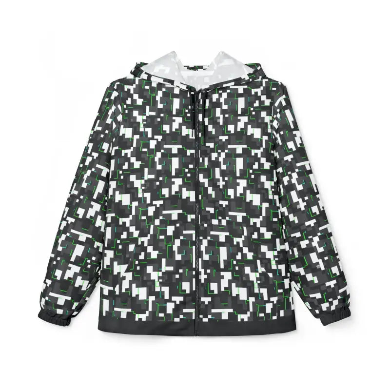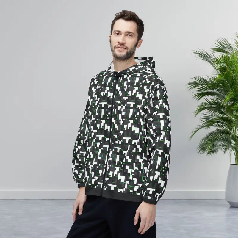 Picture this: you step outside and the wind hits, but instead of reaching for something heavy, you grab your pixel camo windbreaker and you're instantly covered. The digital pattern catches eyes as you move through the street, each pixelated square of deep green, charcoal black, and crisp white creating a modern tactical vibe that feels fresh whether you're hiking a trail or grabbing coffee downtown. This print hooded windbreaker wraps you in lightweight protection that moves with your body, never weighing you down or restricting your flow. The fabric has that perfect swish when you walk, that satisfying sound of quality polyester that tells you it's built to handle whatever the day throws at you. It's the kind of jacket that makes you feel ready for anything, like you've got your armor on but without any of the bulk or stiffness that comes with heavier outerwear.