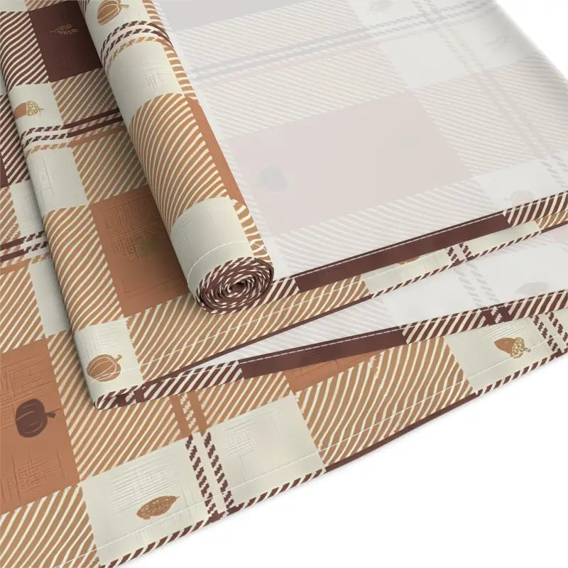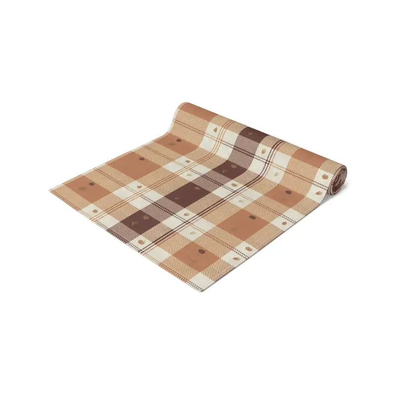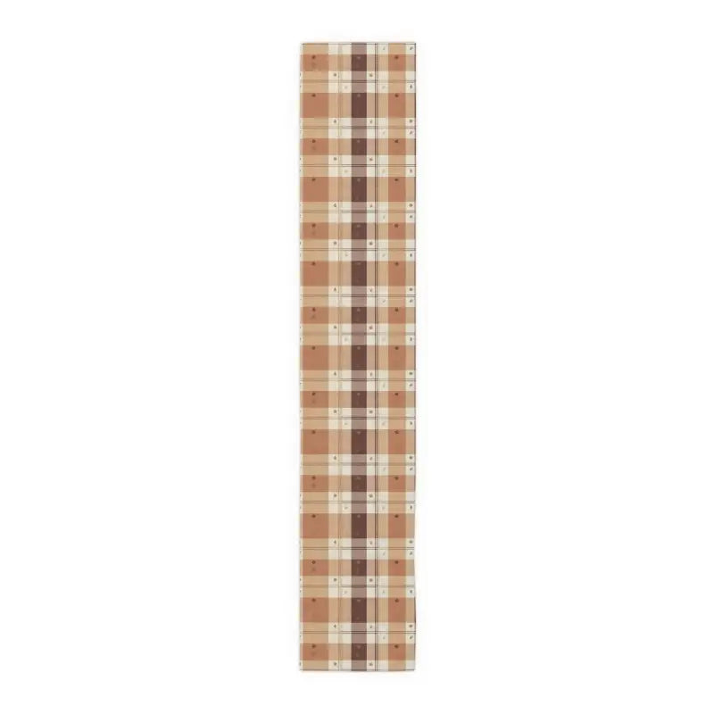 Muted creams blend with warm beiges and deep cocoa lines in a vintage-inspired grid that feels like morning light dancing across weathered wood. The gentle one-sided print offers just the right hint of pattern, perfectly framing layered centerpieces or candle clusters without stealing the show.
