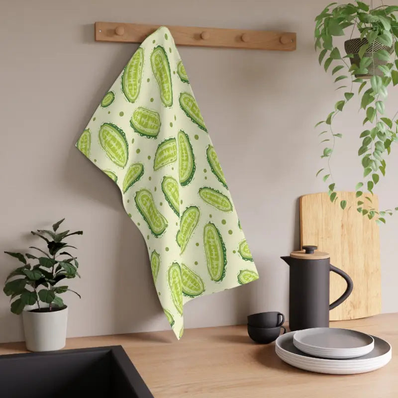 Looking for a fun way to brighten up your kitchen decor and show off your love for veggies? Discover the playful charm of these cucumber tea towels and turn everyday routines into joyful moments!