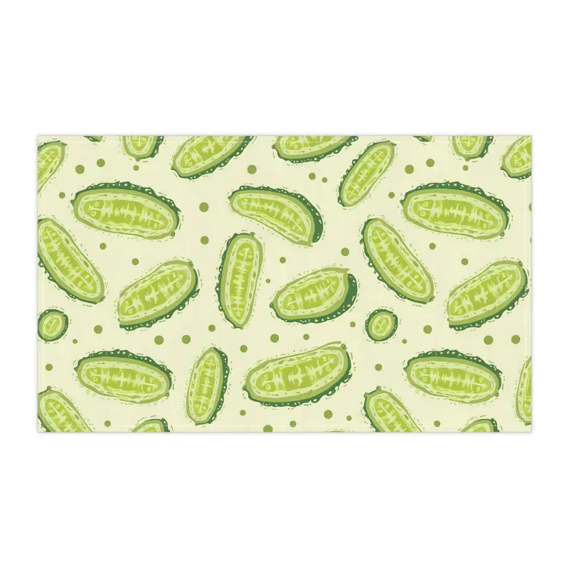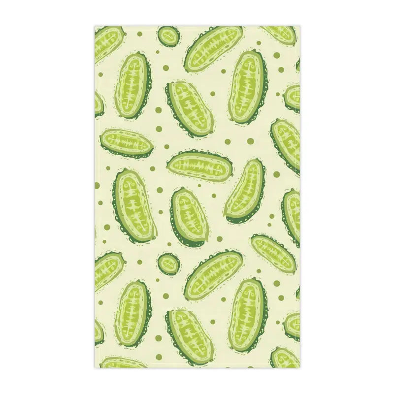 Print: Features a vibrant, playful cucumber pattern designed to make any kitchen decor more fun and lively.