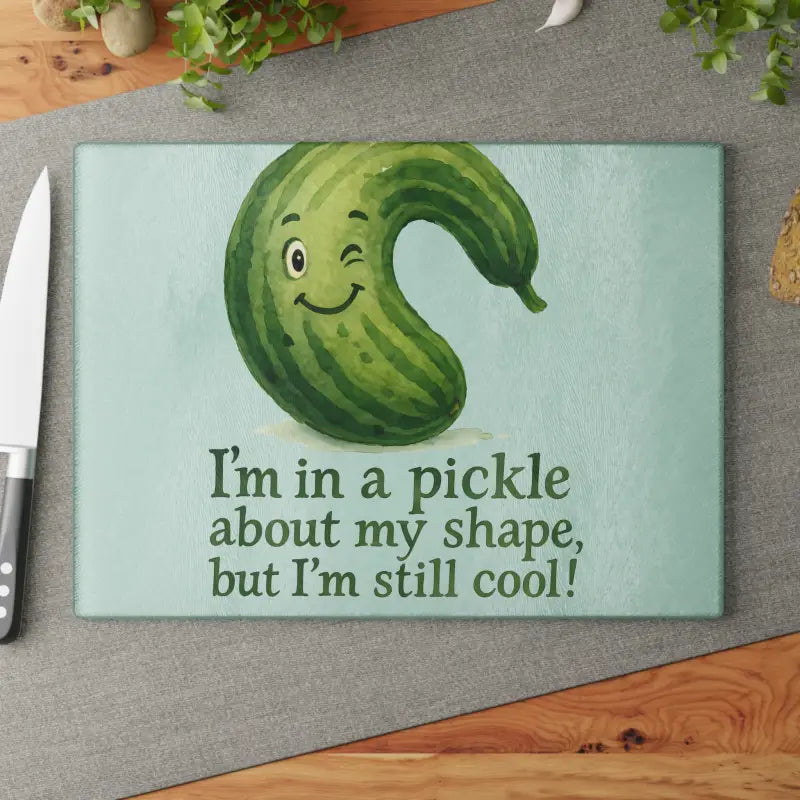 Dive into meal prep magic with this playful pickle glass cutting board that brings a burst of color and joy to every chop and slice. Imagine the satisfying tap of your knife on smooth glass cutting surface as that cheerful pickle grins back at you, turning routine cooking into a daily celebration.