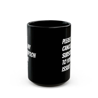 Print: Bold white typeface says Please cancel my subscription to your issues for laugh-out-loud moments every day.