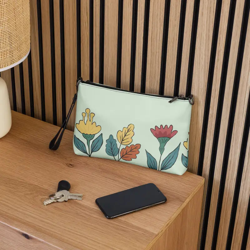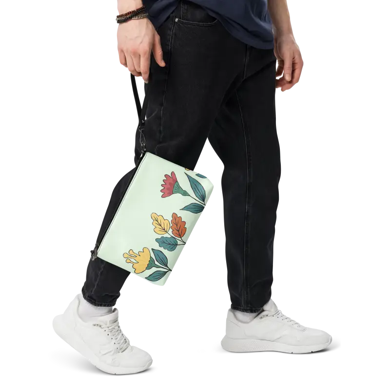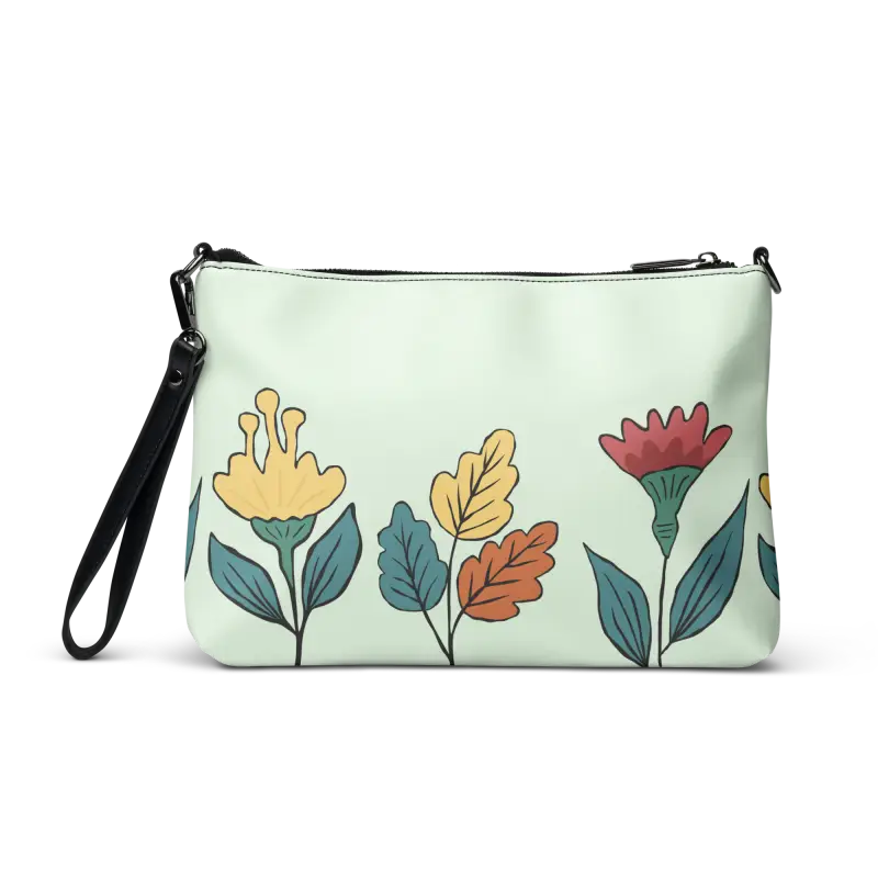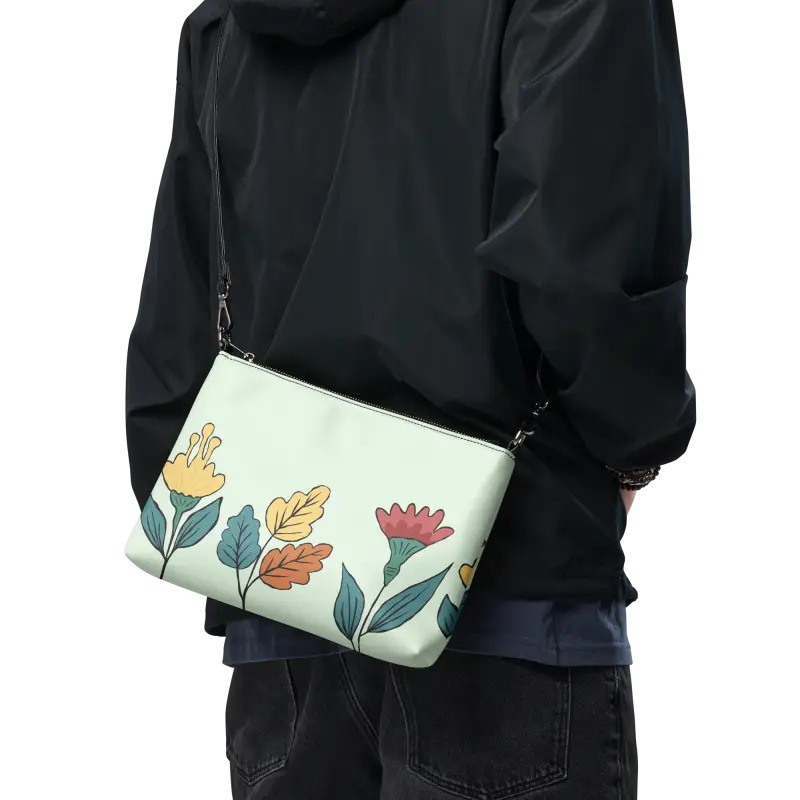 A burst of bright pinks, soft lavenders, and fresh greens spill across a sleek rectangular silhouette, framed by neat stitching that highlights the pretty flowers sling bag vibe. The compact shape feels just right against your hip, making it the perfect modern lifestyle essential.