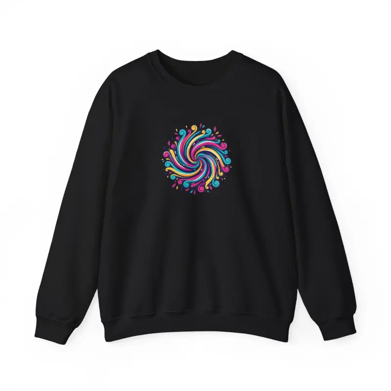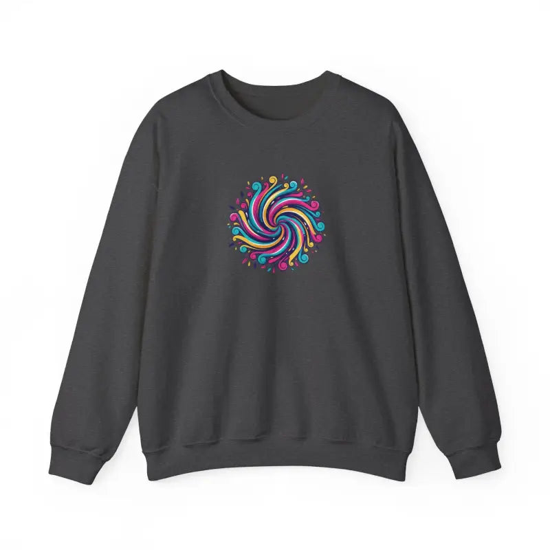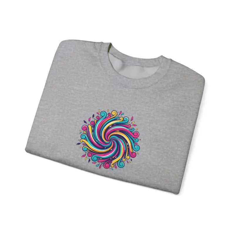 This swirl crewneck sweatshirt brings pure joy to your wardrobe with its eye-catching design that practically swirls off the clean white canvas. The vibrant mandala pattern creates movement and energy while keeping things effortlessly wearable for any adventure.