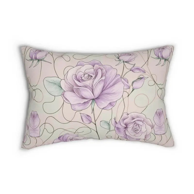 Purple Roses, Spun Polyester Lumbar Pillow. Add this beautiful spun-polyester lumbar pillow to your home decor pieces today. It comes with a stuffing pillow included. The casing is made of a spun polyester fabric that is inherently mildew and water-resistant. You can place your design on both sides or have a different design on each side. It has a hidden beige zipper to maintain a finished and stylish look.