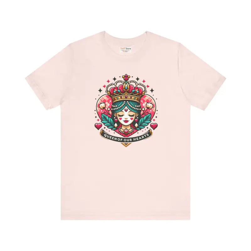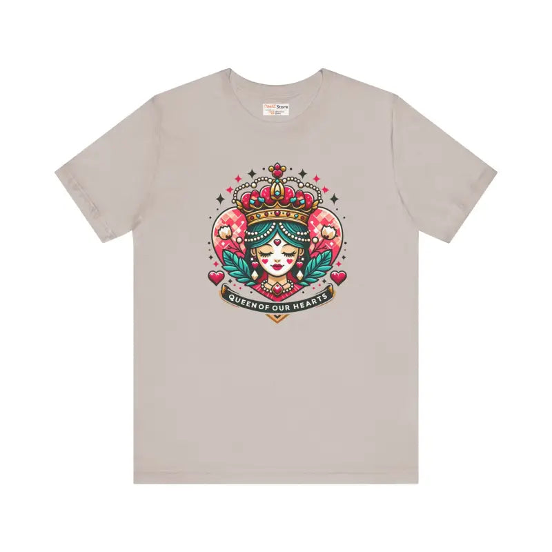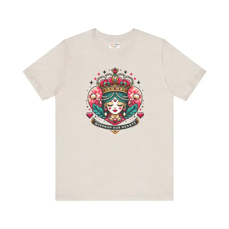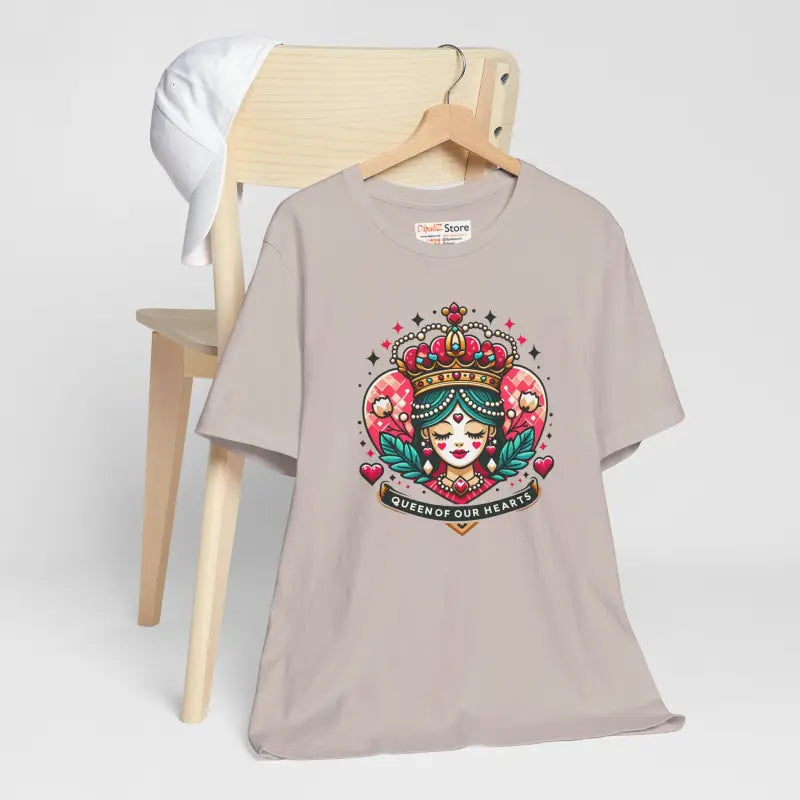 The design centers around a striking heart queen motif brought to life with vibrant colors and detailed graphics that lend an undeniable charm to the tee. The print is carefully applied to maintain its brilliance wash after wash ensuring that you continue enjoying the lively visual even after repeated wears. This exquisite detail is what makes this unisex jersey tee a standout piece in any collection.