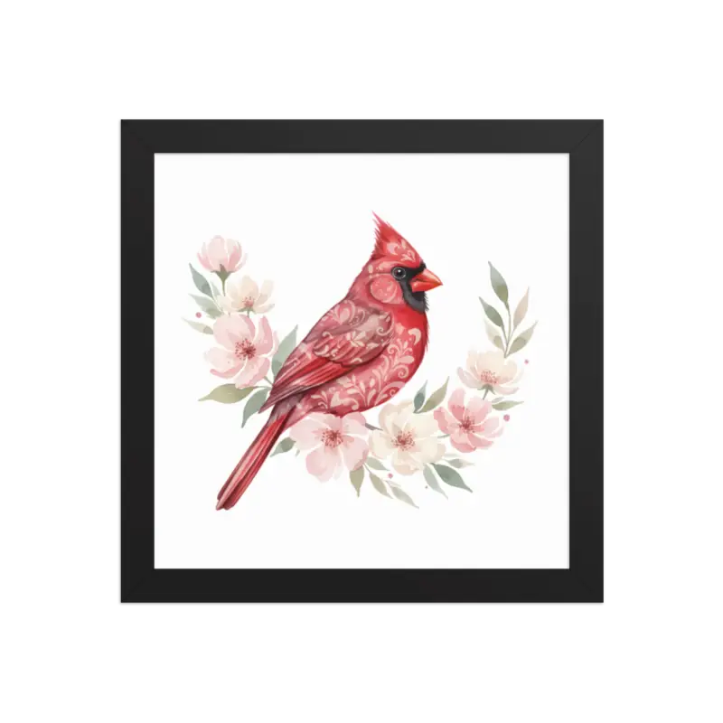 Red Cardinal Framed Poster Matte Black Wood Art – DipaliZ